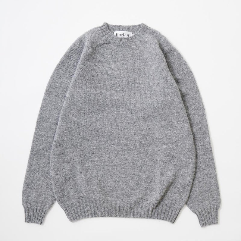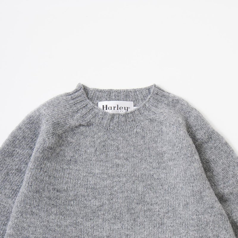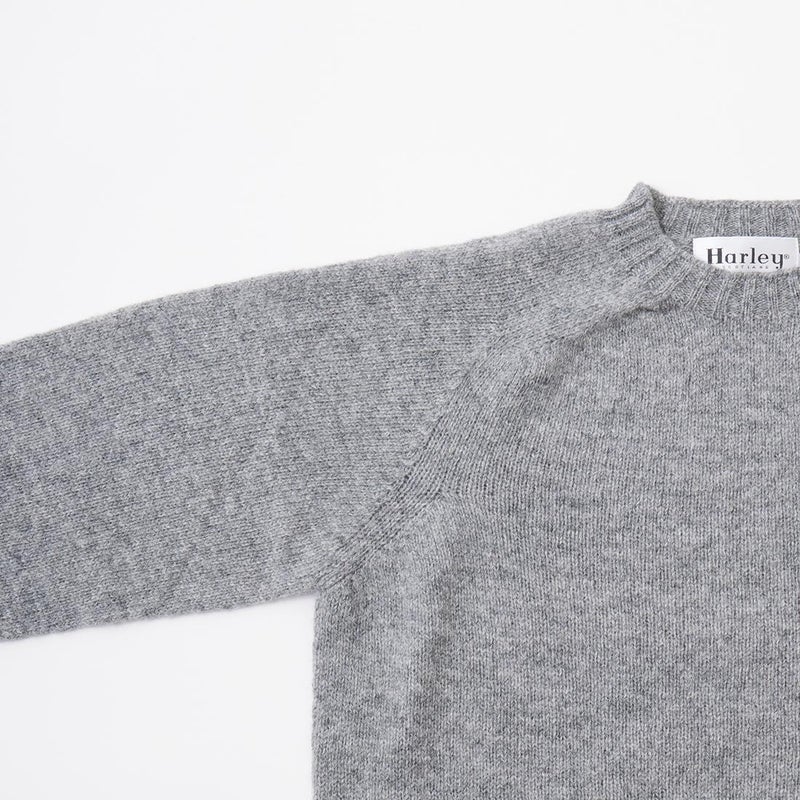 HARLEY OF SCOTLAND (ハーレーオブスコットランド) PURE NEW WOOL SADDLE SHOULDER CREW NECK SWEATER - MID GREY