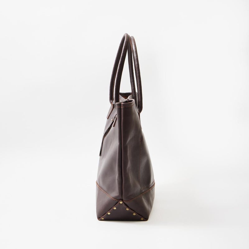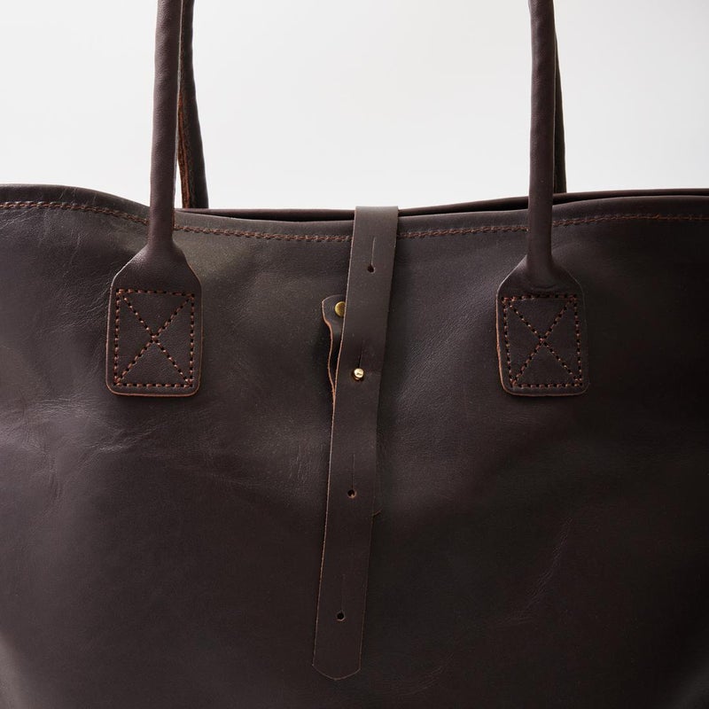 HERITAGE LEATHER (ヘリテイジレザー) ALL LATIGO LEATHER TOTE W/CLOSURE STRAP - BROWN LATIGO