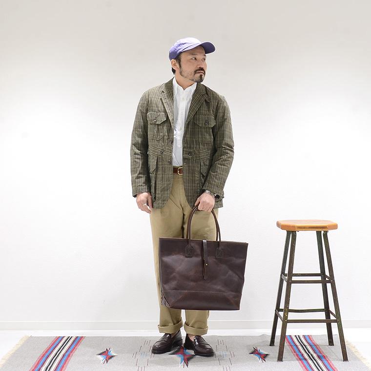 HERITAGE LEATHER(ヘリテージレザー)のALL LATIGO LEATHER TOTE W/CLOSURE STRAP。しっかりとしたハリのあるアメリカのラティゴレザーを使用したトートバック。普段使いから1泊2日程度のお出か掛けまで幅広く対応してくれるサイズ感。トップ部分はストラップで開閉が可能。ボトム部分は2重構造になっておりボトムサイドはリベットで補強されている強固な作り。ラティゴレザーの経年変化も楽しんで頂ける永く愛用して頂けるトートバックです。