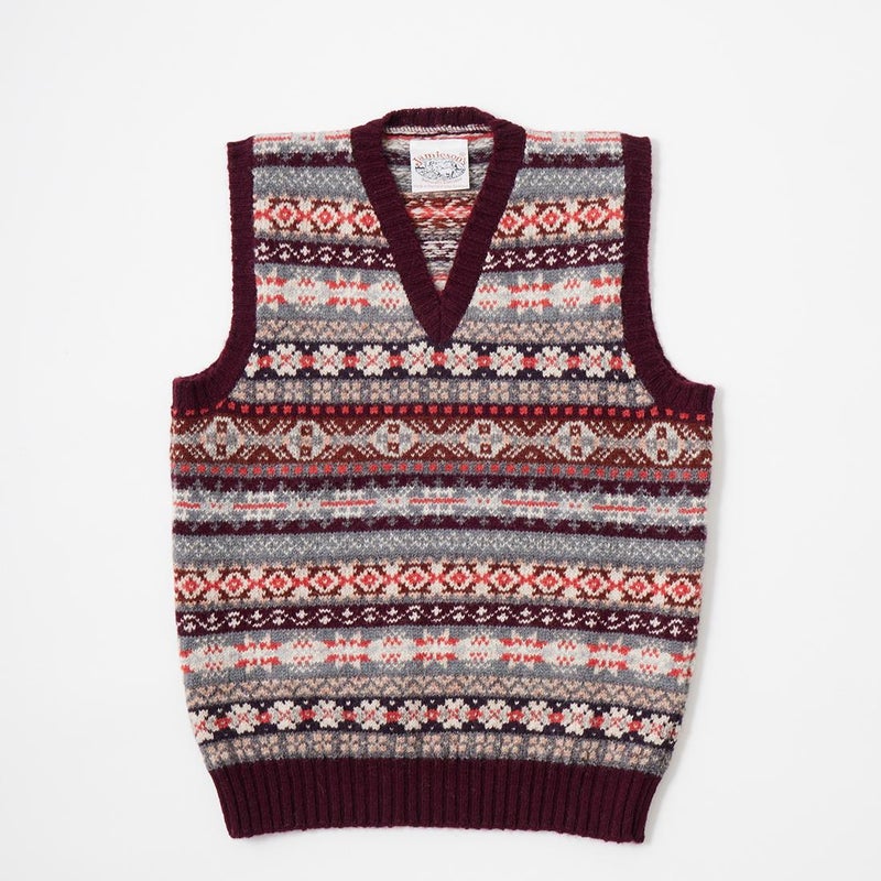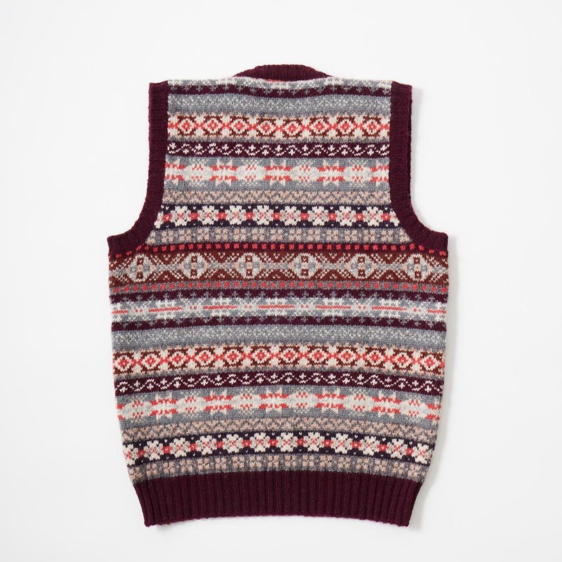 フェアアイル柄 Vネック ニット ベスト メンズ スコットランド製