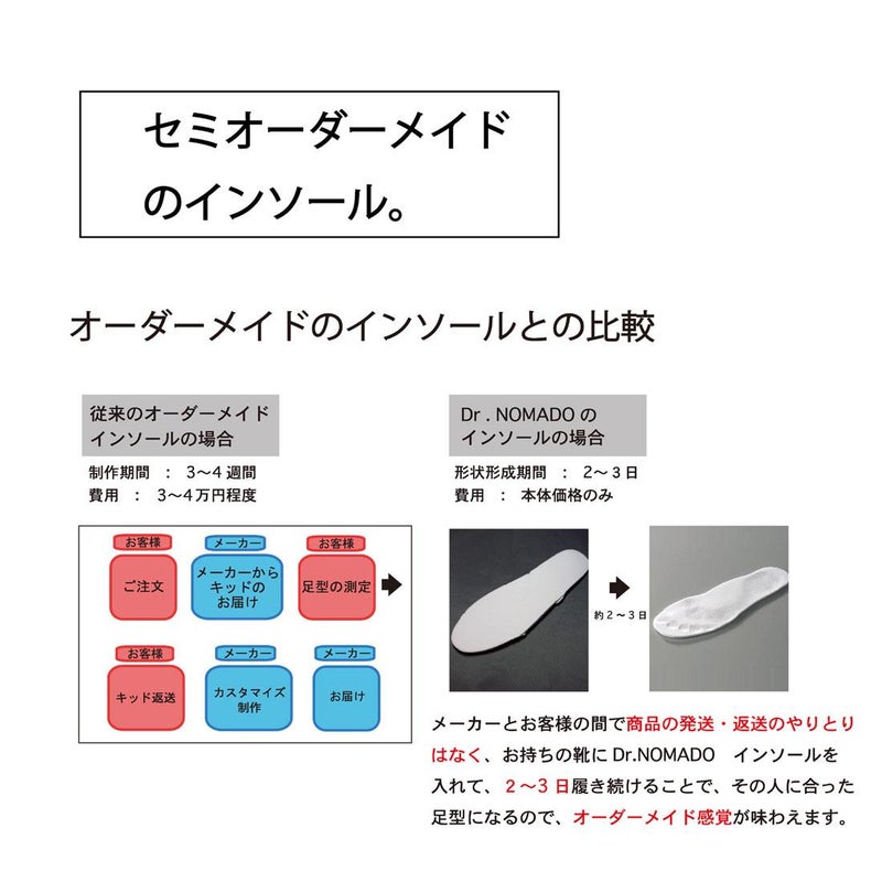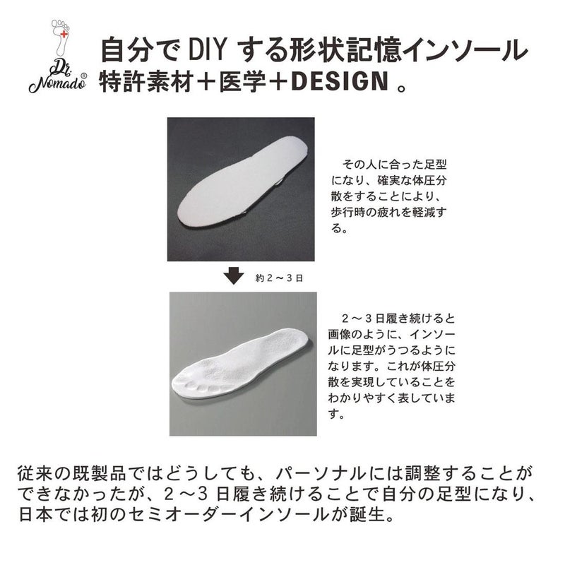 DR.NOMADO(ドクターノマド)から自分の足型になるDIYインソールのデリバリーです。自分の足型になる形状記憶の特許素材を使用しており、2、3日履き続けることで自分の足の形に形成される画期的なインソール。オーダーメイドのようなインソールを簡単に作ることが可能です。こちらは3つのアーチをサポートして、将来起こりうる障害を予防し、快適に生活ができるよう設計されたプレミアムシリーズになります。
