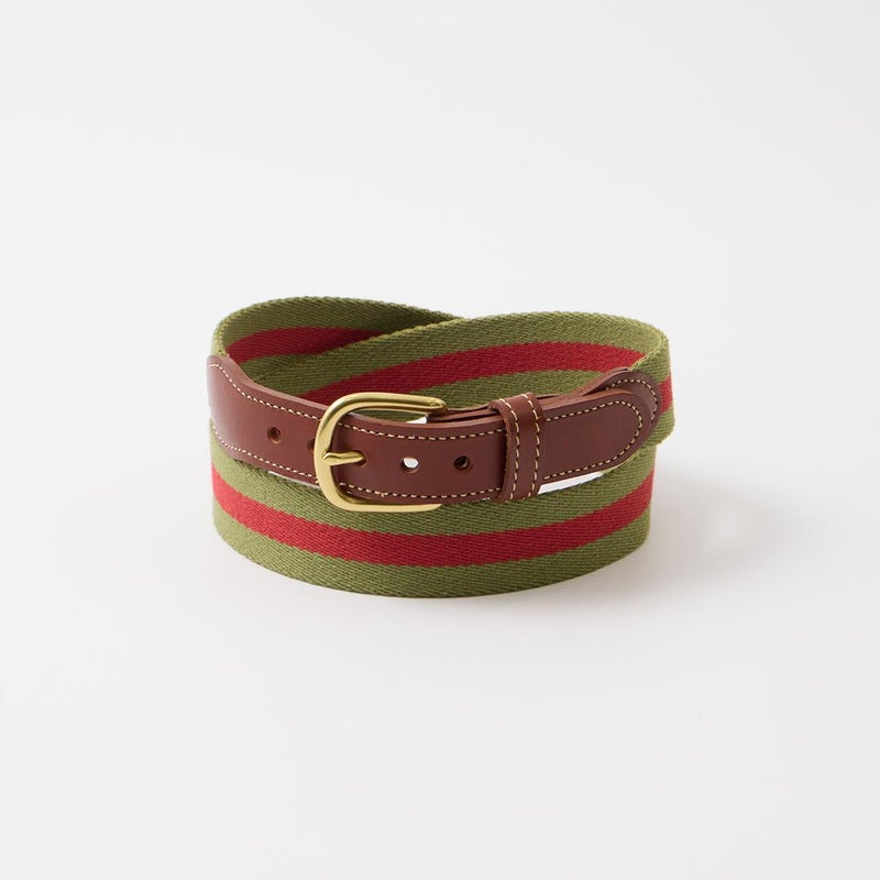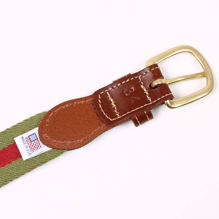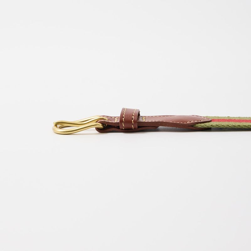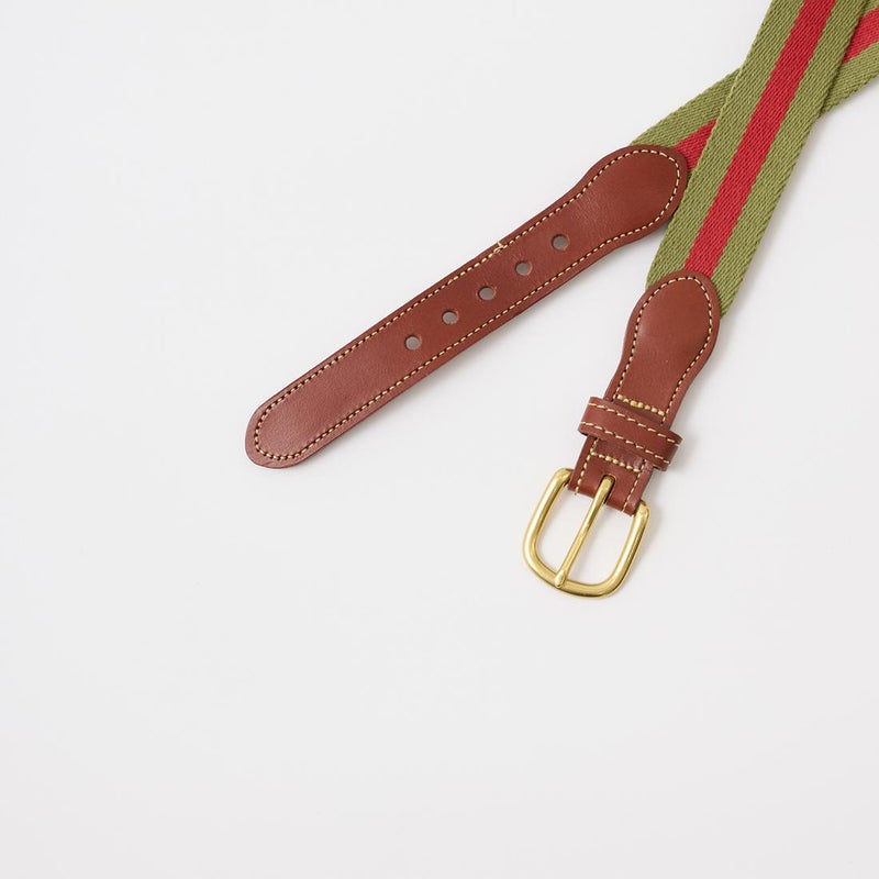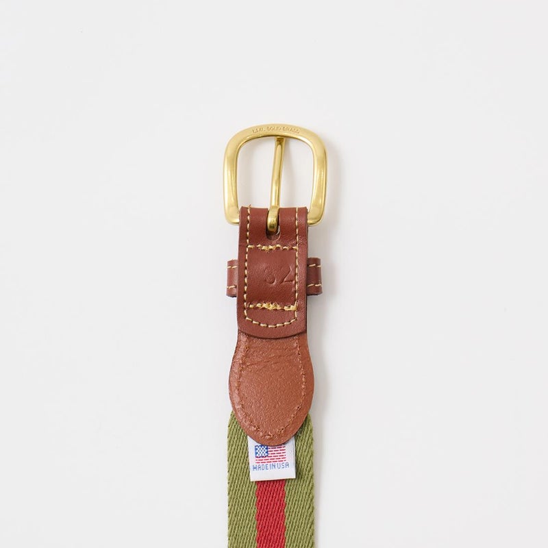 LEATHERMAN BELT (レザーマンベルト) 1.25 STRIPED COTTON SURCINGLE W/YELLOW STITCHED TABS BRASS HARNESS BUCKLE - OLIVE_RED