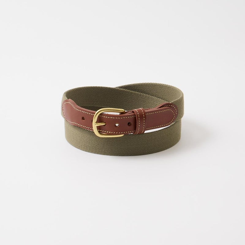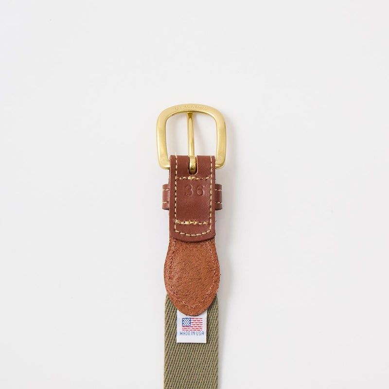 LEATHERMAN BELT (レザーマンベルト) 1.25 SOLID COTTON SURCINGLE W/YELLOW STITCHED TABS BRASS HARNESS BUCKLE - NAVY