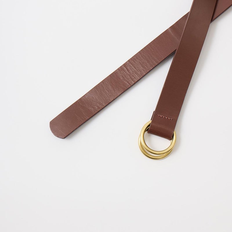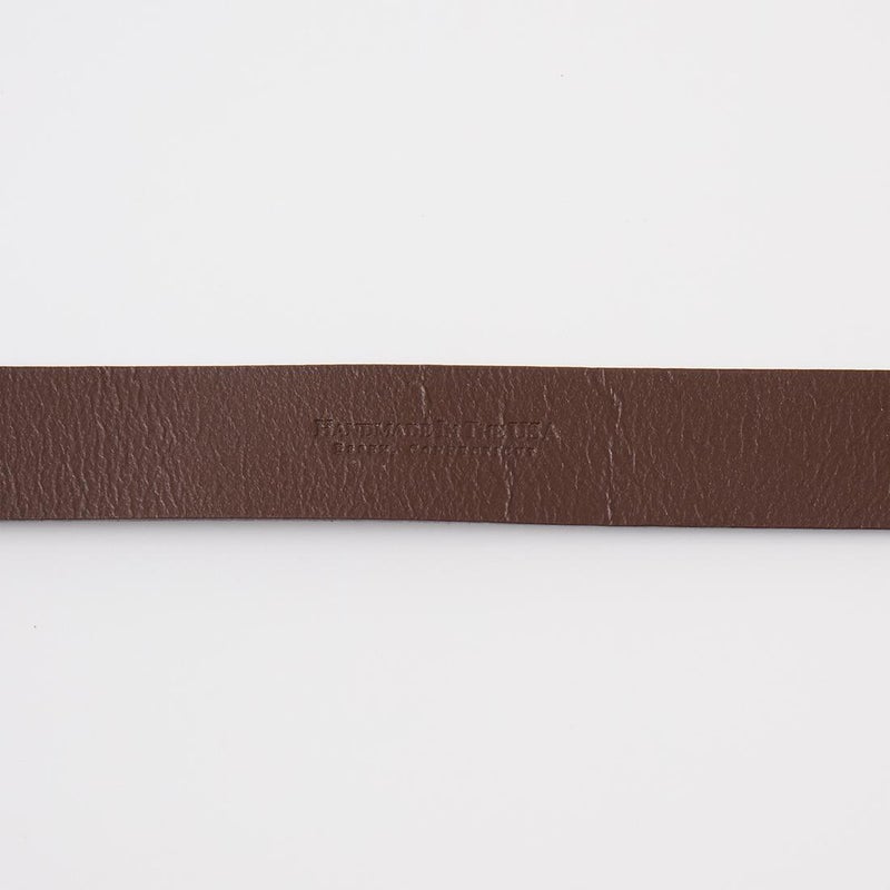 LEATHERMAN BELT (レザーマンベルト)の LEATHER O RING BELT W/BRASS BUCKLE。オールレザーのダブルリングベルト。バックル部分にボリュームがでるダブルリングバックルなのでスタイリングのちょっとしたアクセントになってくれます。シンプルなデザインで3cm幅なのでパンツ、スタイリングを選ばずに使用して頂けます。レザータイプのモデルなので経年変化も楽しんで頂ける1本。アメリカ生産というところも見逃せないポイントです。