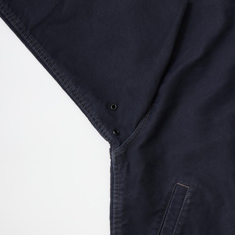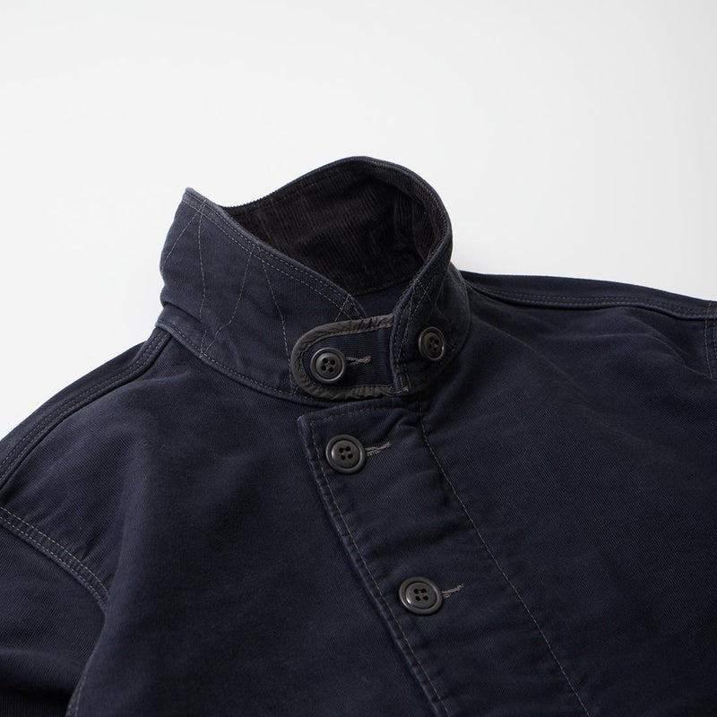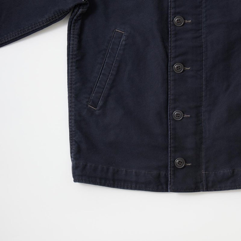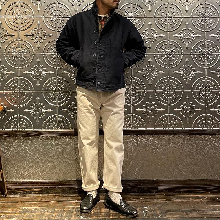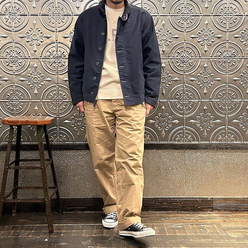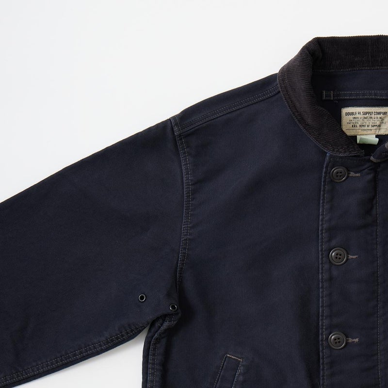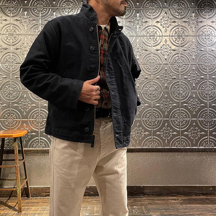 Double RL(ダブル アール エル)のBOWER DECK COTTON JACKET COTTON JUNGLE CLOTH。ヴィンテージのデッキジャケットがデザインソースとされた1着。コーデュロイのショールカラーが特徴的なデザイン。フロントウエストに2つのポケットと左ウエストの内側にもポケットを装備。柔らかな肌触りと耐候性を備えたグログラン織りの特別に開発されたジャングルクロスを再現した素材を使用。染色と着色加工を施しヴィンテージ感たっぷりのDouble RL(ダブル アール エル)らしい1着に仕上げられています。
