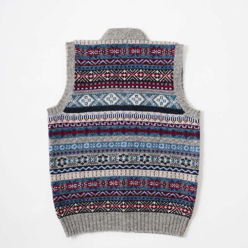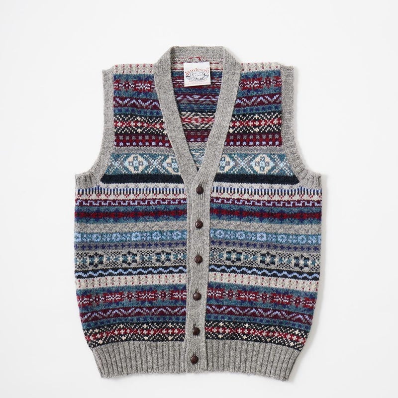 フェアアイル柄 Vネック ニット ベスト メンズ スコットランド製