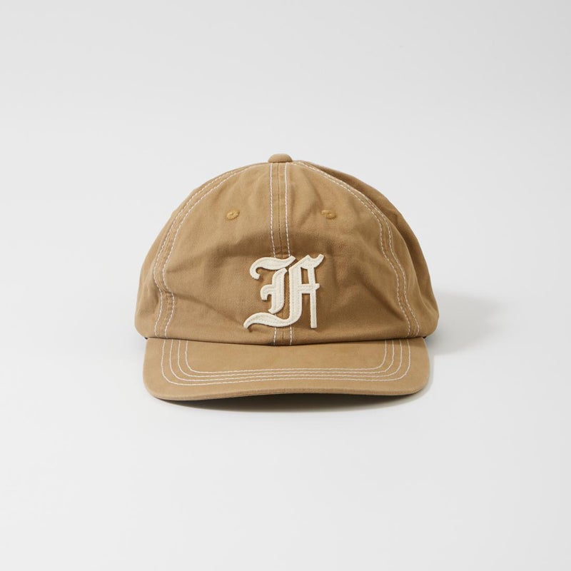 FELCO (フェルコ) NEW SHAPE TWILL STONE WASHED BB CAP W/OLD FONT "F" FELT - TAN_NATURAL STITCH_F_NATURAL