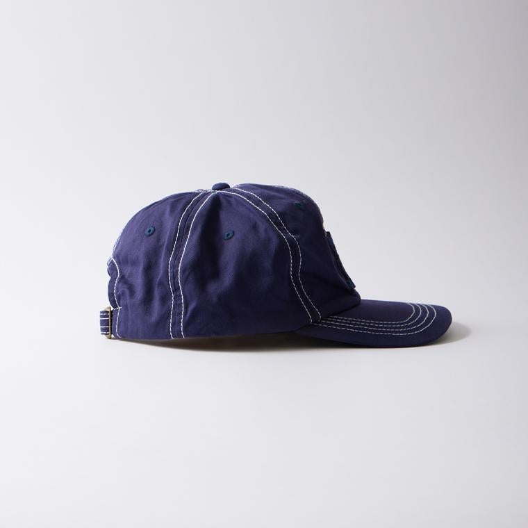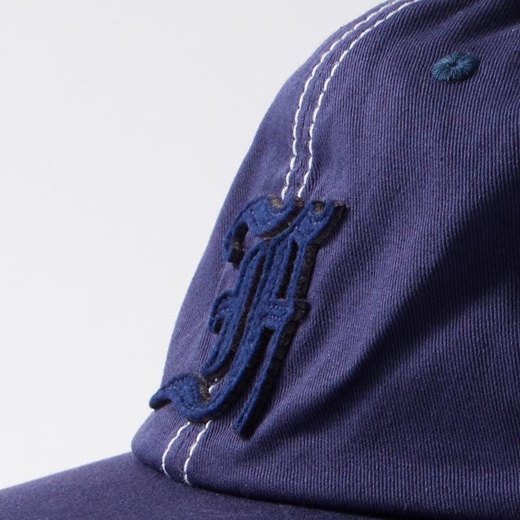 FELCO (フェルコ) NEW SHAPE TWILL STONE WASHED BB CAP W/OLD FONT "F" FELT - NAVY_NATURAL STITCH_F_NAVY