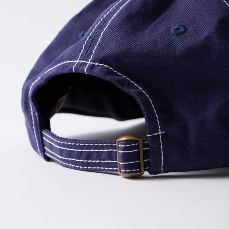 ストーンウォッシュ加工によるガシガシ使い込んだかのような雰囲気が良い感じのベースボールキャップです。定番のベースボールキャップタイプと比べて若干ツバが大きく平らな仕上がり。着用感は浅めでスッキリとしたシルエットのキャップなので被り易く、バックにはアジャスターも装備しているのでサイズの自由度が高くなっています。コットンツイル素材はオールシーズン使えますし、経年変化も楽しんで頂けるので長く愛用して頂けます。幅広いスタイリングにも使って頂けるベースボールキャップです。