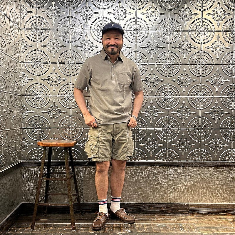 170センチ68キロやや肩幅広めの私の体型でジャストサイズよりのスッキリとした着用感で着るならMサイズで、ゆったりとした着用感で着るならLサイズを選びます。夏らしく楽にスポーティに合わせられるならLサイズがオススメです。だけど、ちょっと小綺麗に合わせたい、ビジネス使用でも合わせたいという方でしたらMサイズのほうがオススメですね。洗いかけた仕上がり、気軽にガシガシ洗ってもヘタれにくい頑丈さは嬉しい1着。幅広いシーン&スタイリングにもしっかり対応してくれる使い勝手の良いデザインです。