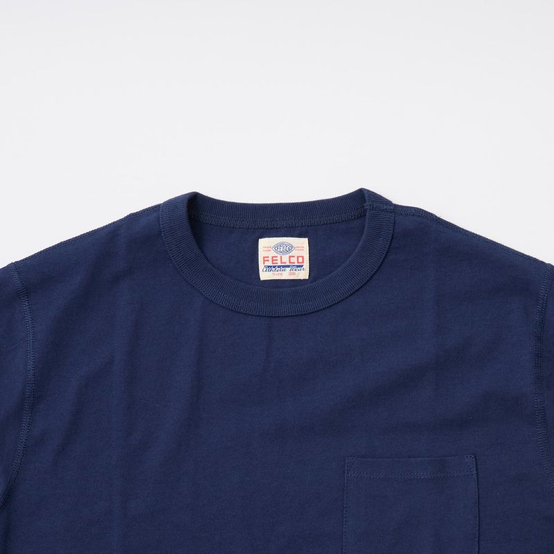 HEALTH KNIT(ヘルスニット)とFELCO(フェルコ)のダブルネームのS/S CREW NECK POCKET T SHIRT U.S.COTTON OPEN END JERSEY。オーソドックスなクルーネックのポケットTシャツ。幅が広めのバインダーネックがクラシカルな雰囲気。左胸にはFELCO(フェルコ)のアイコン的なディテールのポケットを装備。風合いの良いU.Sコットンを特注で編み立てた生地を使用。吸水性と速乾性に優れ、抗菌、防臭効果も備えた優れもの。左裾に付けられたFELCO(フェルコ)のワッペンが全体のアクセントになっています。