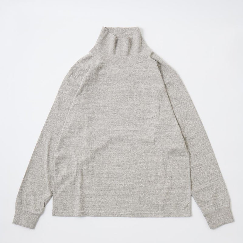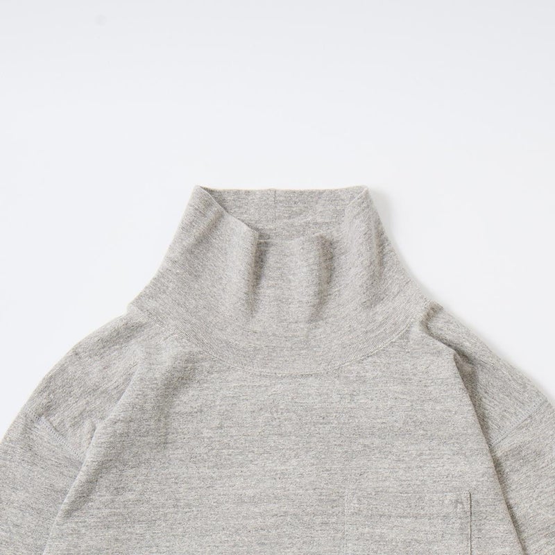 FELCO(フェルコ)のL/S TURTLE NECK POCKET T 7oz 18 SINGLE JERSEY。タートルネックの高さや幅が良い塩梅の雰囲気のある長袖Tシャツ。襟元や胸のポケット、リブ付きの袖口が特徴的なディテール。アメリカブランドらしいボックスシルエットで程良いゆとりがあり、一枚での着用は勿論ですがインナーとしても活躍。7オンスのタフな生地で着倒しても型崩れしにくいデイリーに着用して頂ける1着。