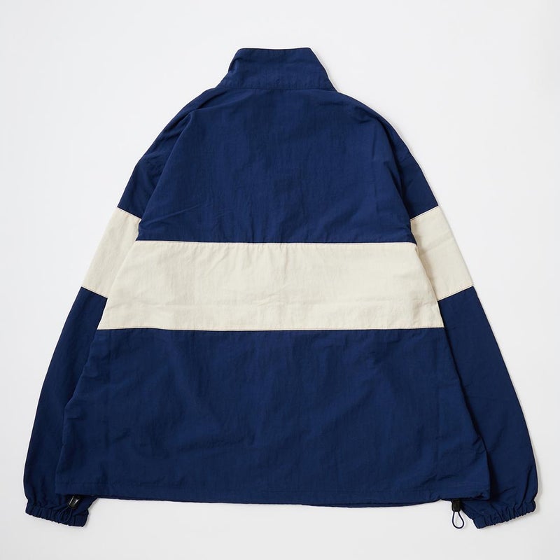 D.C. WHITE(ディーシーホワイト)のIVY LEAGUERS TRAINING TOP NYLON。『テイクアイビー』で撮られた60年代のアイビーリーガーらが着用していたナイロンジャケットがデザインソースのスポーティなジャケット。軽量なナイロンクロスを使用。太いボーダーとクラシックなカラーコンビが特徴。1枚での着用は勿論ですがインナーでの着用も可能な汎用性の高い1着。裾にはドローコードを装備。シルエットをアレンジして楽しんで頂けます。ジップの開閉による襟のアレンジも楽しみな一枚。