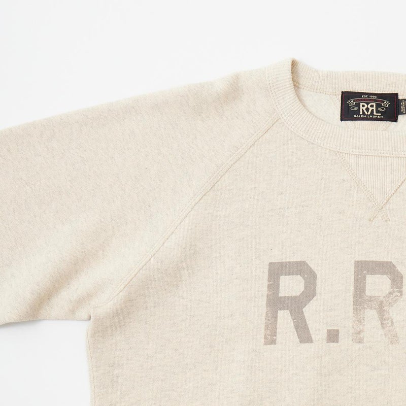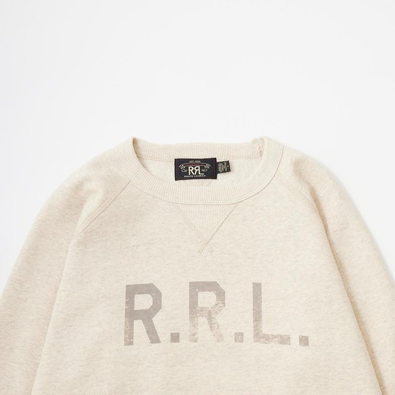 Double RL(ダブルアールエル)のRAGLAN DBL V LONG SLEEVE PULLOVER CTN POLY FLEECE。コットン混紡フリースを使用したラグランスリーブのクルーネックスウェットシャツ。首の前と後ろに採用されたV字ガセットがヴィンテージスウェットを彷彿させるディテール。フロントのDouble RL(ダブルアールエル)のオリジナルロゴも良い雰囲気。良い雰囲気のウォッシュ加工もポイント。