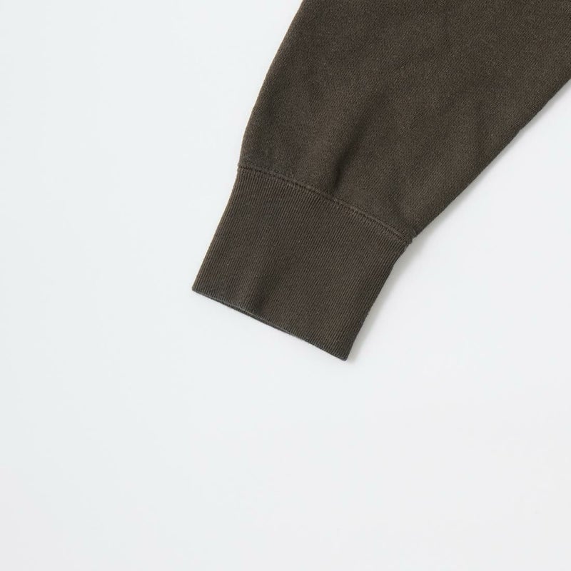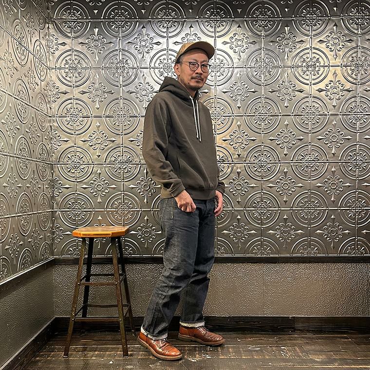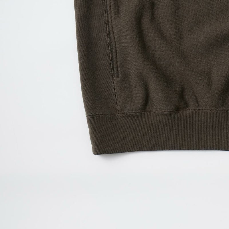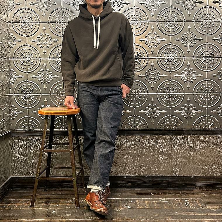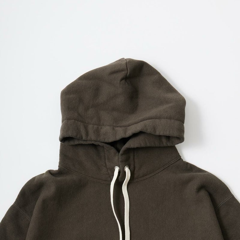 FELCO(フェルコ)の16oz TERRY CLASSIC FIT INVERSE WEAVE SWEAT HOODED PULLOVER。しっかりとした生地感の16オンスのフレンチテリー(裏起毛していないスウェット生地)を使用したプルオーバーパーカー。生地を横向きに使用することで縦縮みを軽減し、サイドリブが横縮み防止と動きやすさを実現したインバースウィーブを仕様。ガシガシ着倒してもへこたれないタフな1枚。袖と裾のリブはやや長めに設定されたヴィンテージを彷彿させるディテール。腰部分に装備された手の入れやすいハンドウォーマーポケットもポイント。従来のモデルよりも全体的にゆとりを持たせたクラシックフィット。ストレスのない着用感のスウェット。