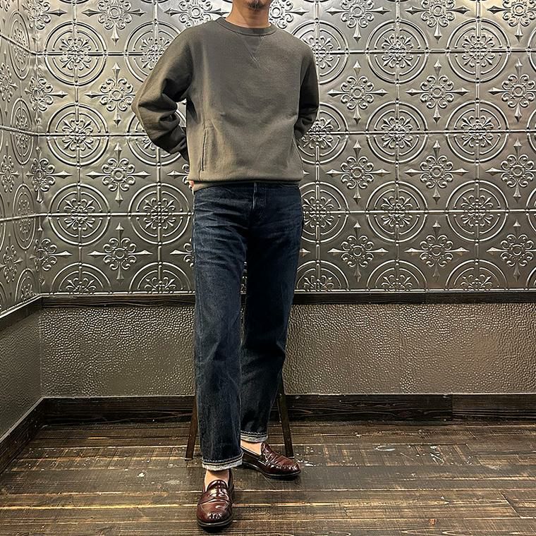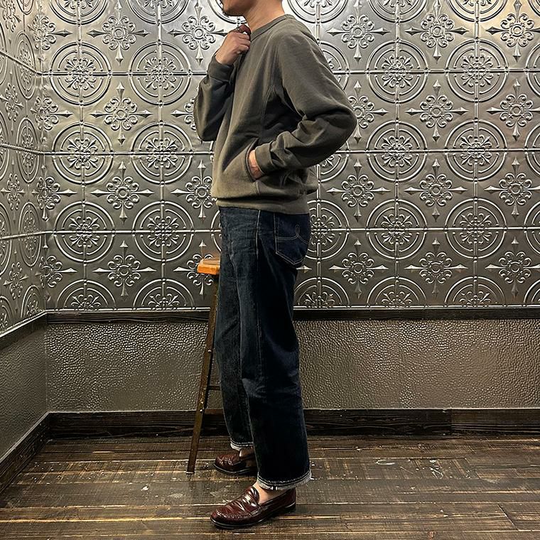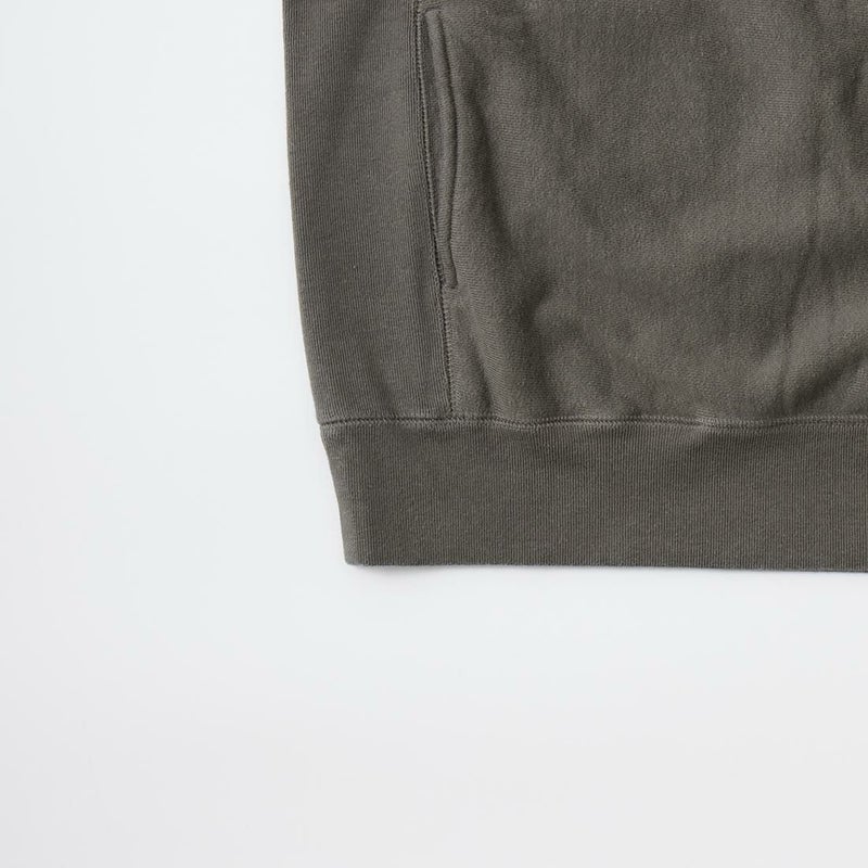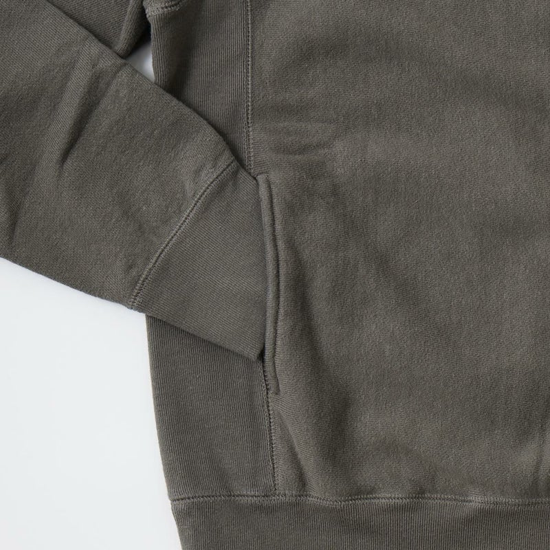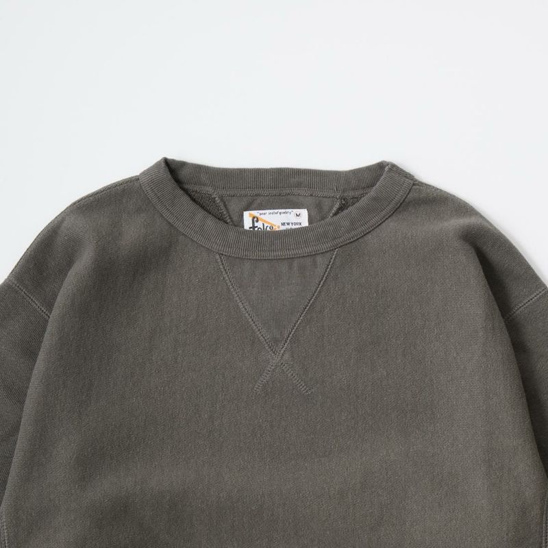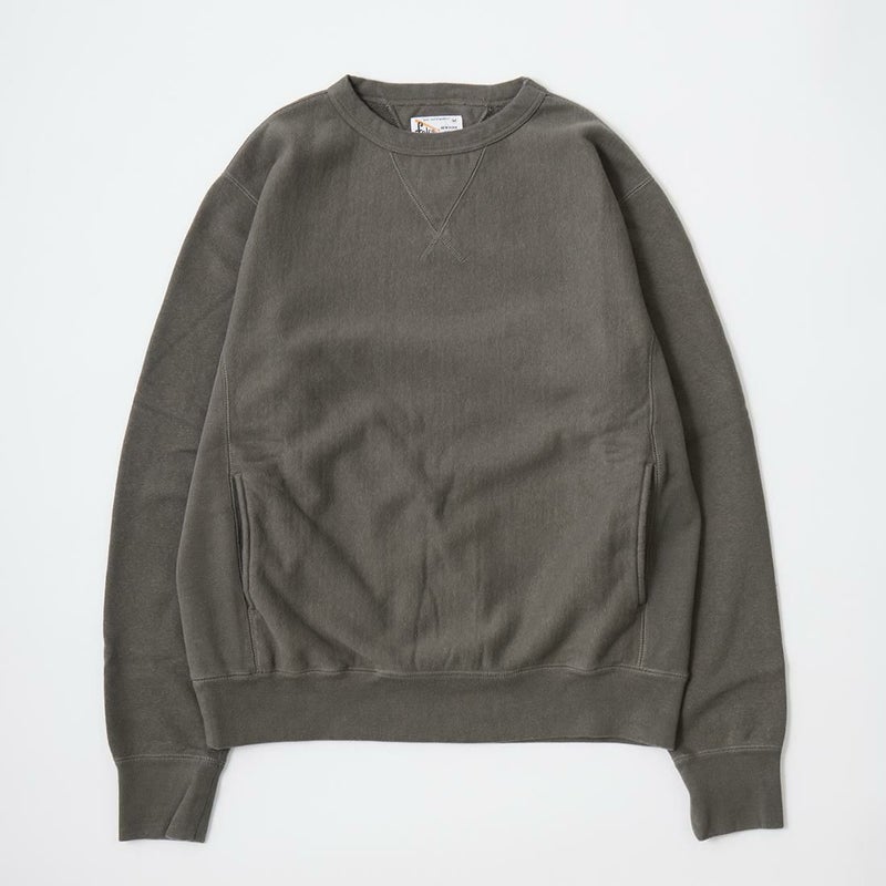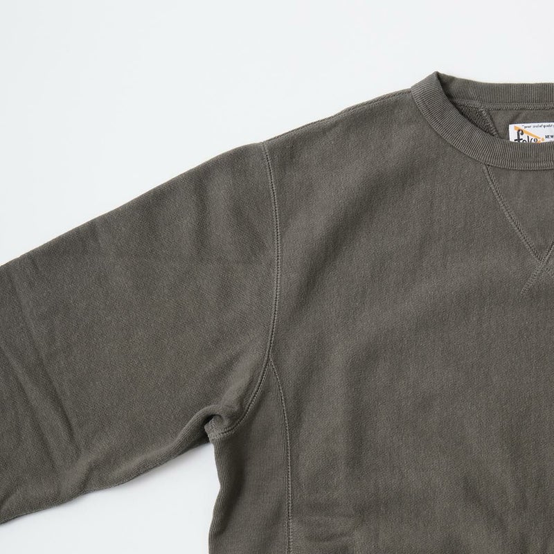 FELCO(フェルコ)の16oz TERRY CLASSIC FIT INVERSE WEAVE DOUBLE V GUSSET SET IN CREW SWEAT W/SLASH POCKET。16オンスの厚みとコシのある生地を使用した両Vガゼットクルーネックスウェット。生地を横向きに使用することで縦縮みを軽減し、サイドリブが横縮み防止と動きやすさを実現したインバースウィーブ仕様。ガシガシ着倒してもへこたれないタフな1着。袖と裾のリブはやや長めに設定されたヴィンテージを彷彿させる完成度。やや下辺りにハンドウォーマーポケットが付いているのも手を入れ易い仕様。従来のモデルよりも全体的にゆとりを持たせたクラシックフィット。ストレスのない着用感のスウェット。
