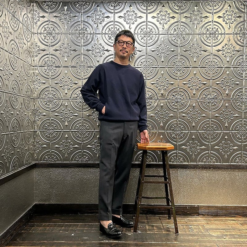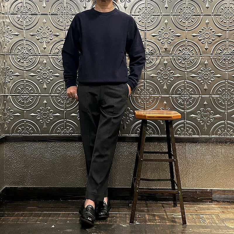 FELCO (フェルコ) 16oz TERRY CLASSIC FIT INVERSE WEAVE DOUBLE V GUSSET SET IN CREW SWEAT W/SLASH POCKET - TWISTED GREY