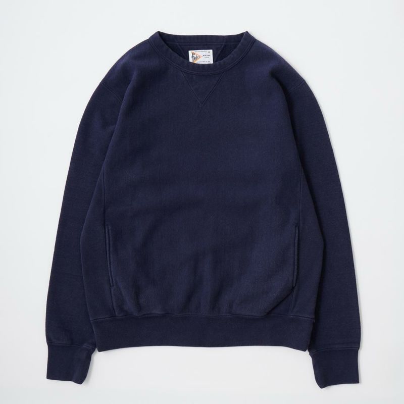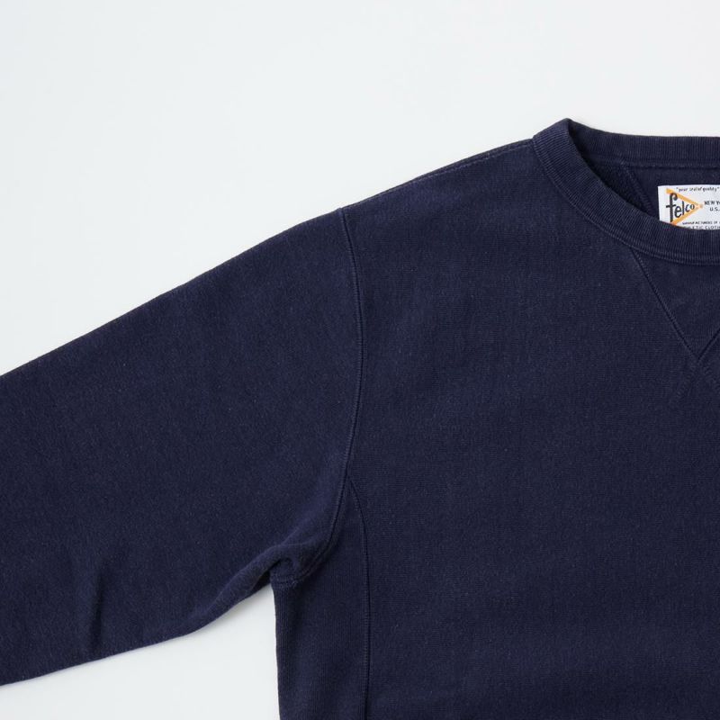 FELCO (フェルコ) 16oz TERRY CLASSIC FIT INVERSE WEAVE DOUBLE V GUSSET SET IN CREW SWEAT W/SLASH POCKET - VINTAGE WASH NAVY