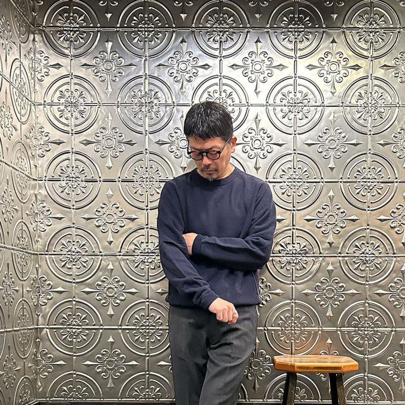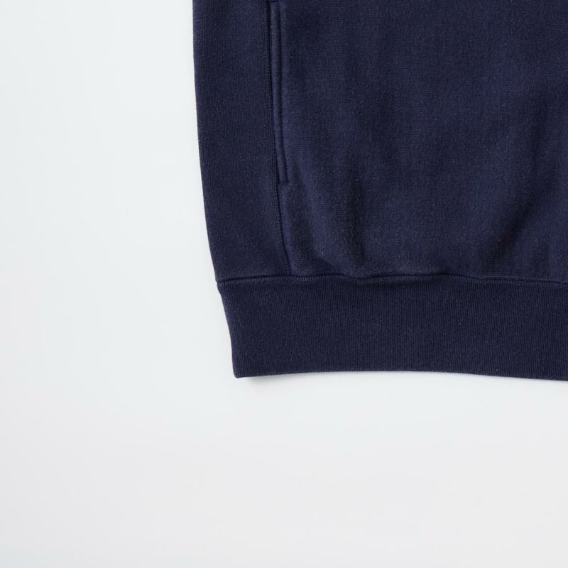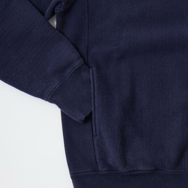 FELCO(フェルコ)の16oz TERRY CLASSIC FIT INVERSE WEAVE DOUBLE V GUSSET SET IN CREW SWEAT W/SLASH POCKET。16オンスの厚みとコシのある生地を使用した両Vガゼットクルーネックスウェット。生地を横向きに使用することで縦縮みを軽減し、サイドリブが横縮み防止と動きやすさを実現したインバースウィーブ仕様。ガシガシ着倒してもへこたれないタフな1着。袖と裾のリブはやや長めに設定されたヴィンテージを彷彿させる完成度。やや下辺りにハンドウォーマーポケットが付いているのも手を入れ易い仕様。従来のモデルよりも全体的にゆとりを持たせたクラシックフィット。ストレスのない着用感のスウェット。