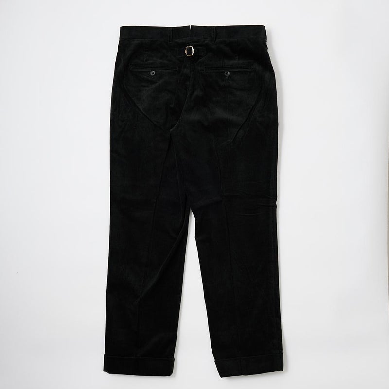 国内ブランドD.C. WHITE(ディーシーホワイト)のCORDUROY AMERICAN TROUSER。古き良きアメリカのトラウザーがデザインソース。凝った前立てや両玉縁のヒップポケット、タコ足つけのベルトループ、バックシンチなどの拘りのディテール。内股、外、ヒップなどを割縫いにすることにより、フラットなドレスパンツをイメージ。素材はイタリアの名門"DUCA VISCONTI"が誇る12ウェールのコーデュロイ。伝統的な"ハンドルカット"技法によって裁断されたこのコーデュロイは繊細な畝と美しい仕上がりそして何よりも絶妙な色彩。