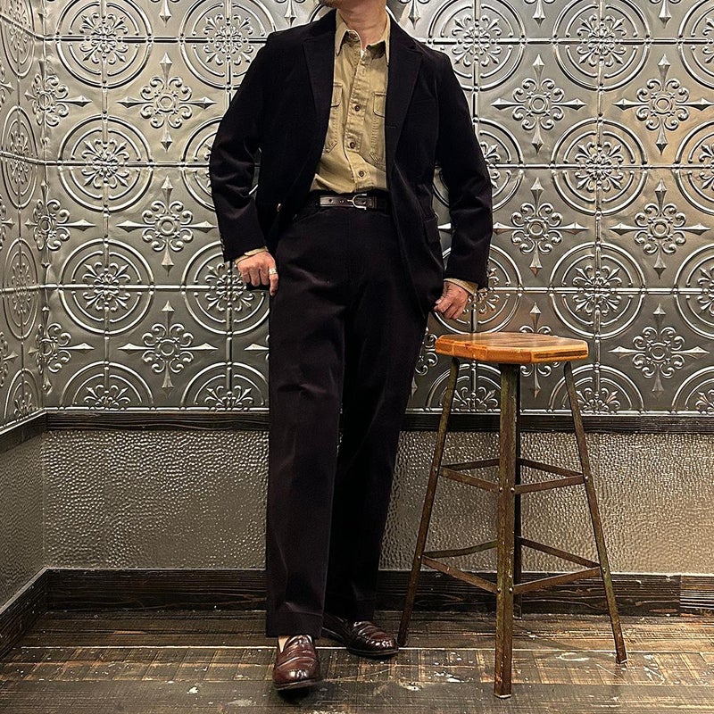 170センチ68キロの私の体型でサイズ選びは46サイズで丁度良い着用感です。このサイズであれば、中にシャツ、カットソー合わせだけではなく、ミドルゲージのニット、ミドルウェイトのスウェットやパーカーを着て羽織ってもストレスなく着れます。これだけ様々なアイテムで様々な着回しができる事を考えるとこのサイズが丁度良いと思いましたね。ボタン、縫製、生地、そしてサイズ感ととにかく拘り抜いた仕上がり。それにこの雰囲気抜群の絶妙な色合い。素敵すぎます。またパンツのサイズ選びですが、通常31から32インチのサイズを選びます。こちらも同サイズ46で丁度良い着用感でした。シャツインして穿くことを考えるとこのサイズです。絶妙なバランスのシルエット、雰囲気の良い生地感、セットアップで合わせた時のサイズバランス。めちゃくちゃ良い感じです。ビジネスだけではなく、イベント行事にもカジュアルに着崩しても取り入れて頂ける究極の逸品。服好きな大人の男なら必携の1着ですね。