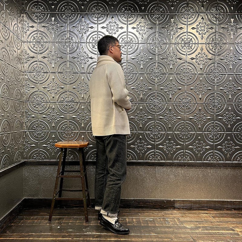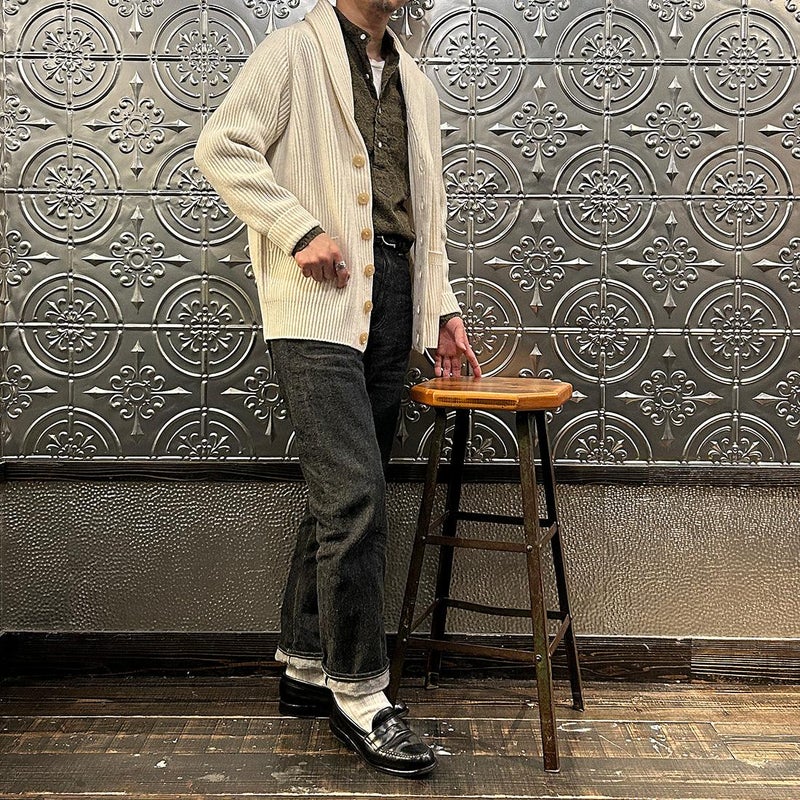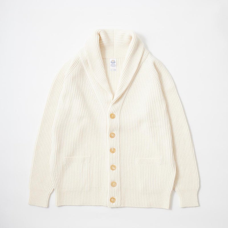 国内ブランドD.C. WHITE(ディーシーホワイト)のSMOKING JACKET。100%カシミヤのショールカラーカーディガン。スポーティなスタジャンから着想した配色でトラッドウェアの源流ともいえるスモーキングジャケットにする、そんな遊び心とクオリティを高い次元で融合させることを目指したアイテム。モンゴルに拠点を持つ会社が集毛から一貫して製品化を担い、地域による個体差を排除すべく、限られた遊牧民とダイレクトに契約。特定のヤギのみから収集された高品質な毛のみを使用。ニッティングにおいては、両畔編みの7ゲージ、糸番手は2/26を使用。製品一着あたり約11頭分のヤギの産毛を使用した非常に贅沢な仕様。着込むほどにしなやかなカシミヤに成長していく、まさに一生ものとしてふさわしい1着。