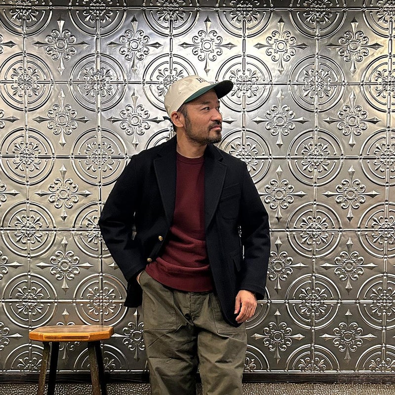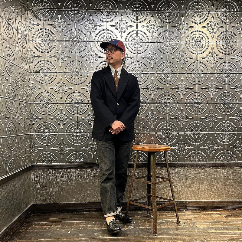D.C. WHITE(ディーシーホワイト)のWOOL SPORTS BLAZER。アイビーリーグのスポーツチームで着用されていたようなブレザーをイメージして製作されたスポーツブレザー。可動域が広い強めの袖の前振り、生地立ちの良いウールナイロンクロスが生み出すふんわりとしたラペルのロール、首回りから肩の付け根にかけて吸い付くようなナチュラルショルダーライン。大きめのステッチ幅でヘムから広めにとられたステッチラインがディーシーホワイトの拘り。インナーに着こめるようなゆったりとした身幅やアームホール。スポーティなテイストも共存させることで日常使いしやすいジャケットに仕上がっています。
