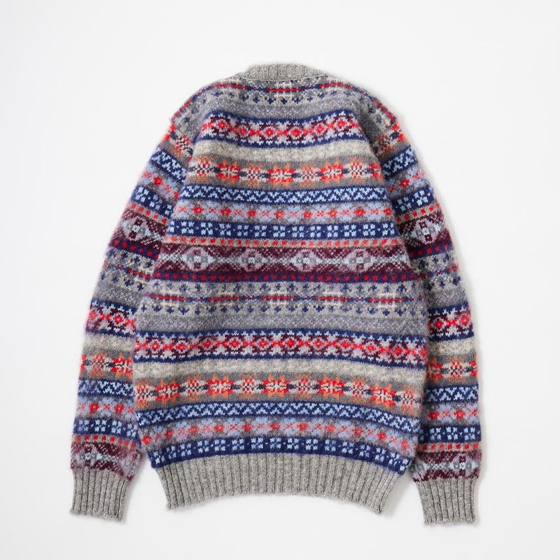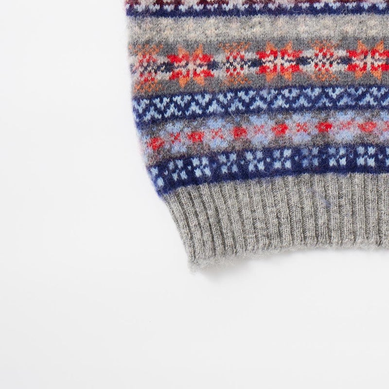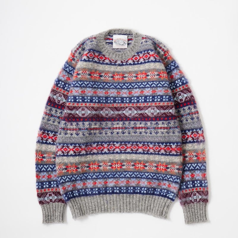 ブラッシュド フェアアイル柄 クルーネック ニット シャギードッグセーター スコットランド製