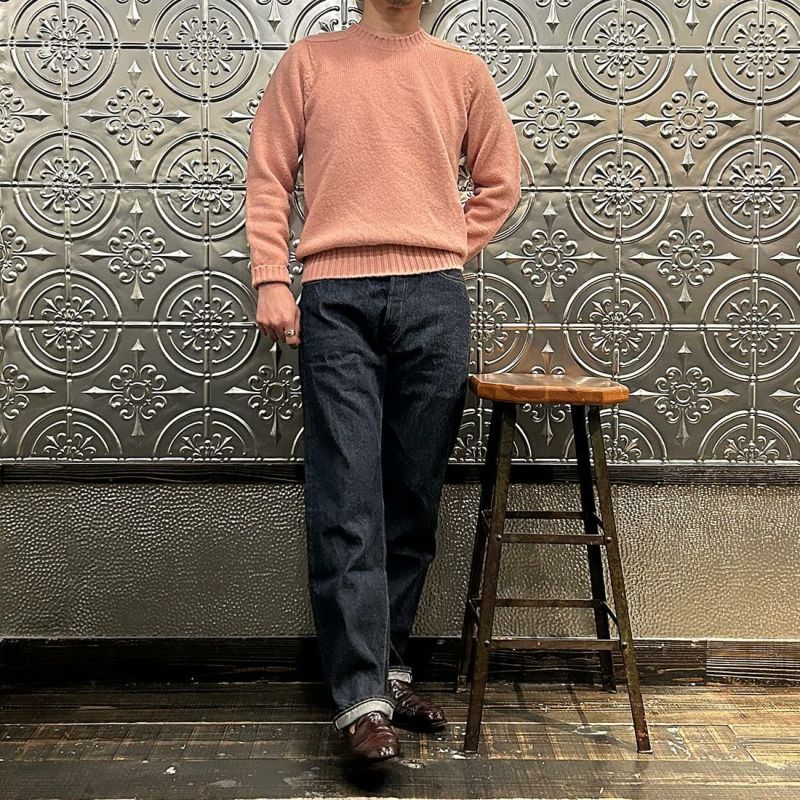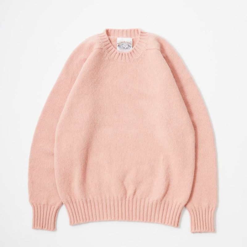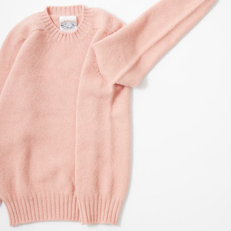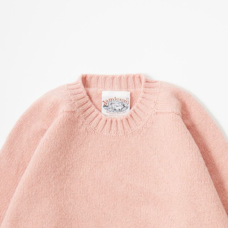 JAMIESON'S(ジャミーソンズ)の3PLY PLAIN SADDLE SHOULDER CREW NECK。3本撚りの太い糸で編まれたしっかりとしたシェットランドセーター。肩はラグランスリーブの一種のサドルショルダー。肩部分が平行でラグランスリーブより切り替えの形が角張った形。鞍(サドル)をかけたような見た目が由来。袖と脇のサイドシームが無いホールガーメントで編み上げたシームレス仕様。スタンダードなデザインでスタイルを選ばない使い勝手の良い1着です。
