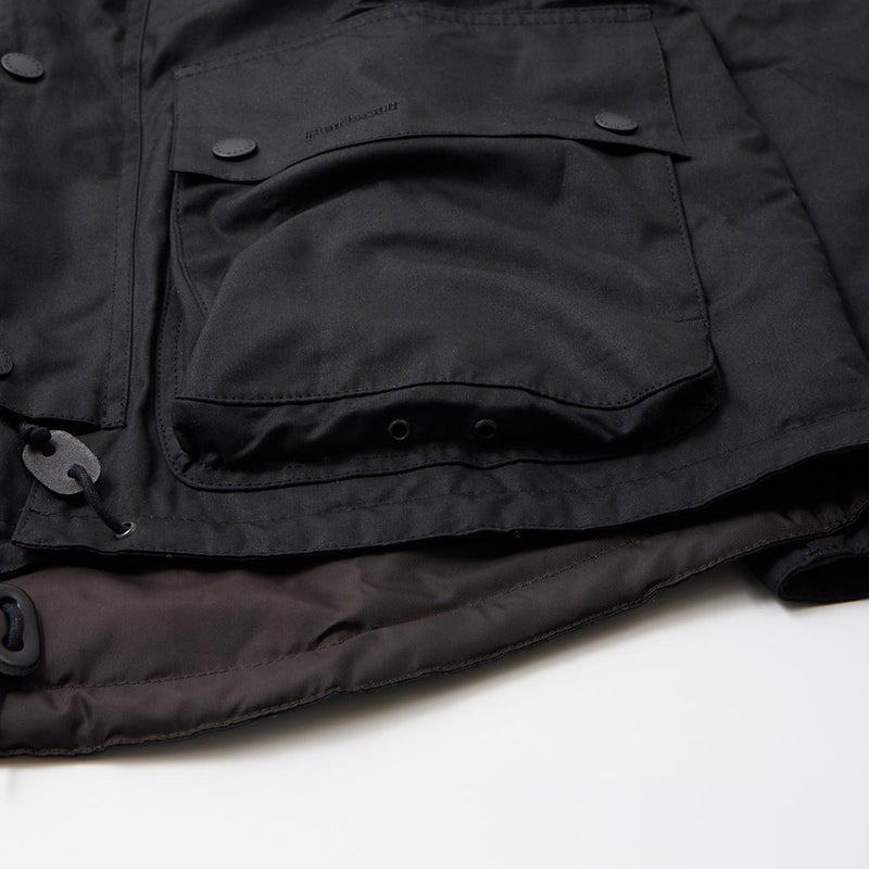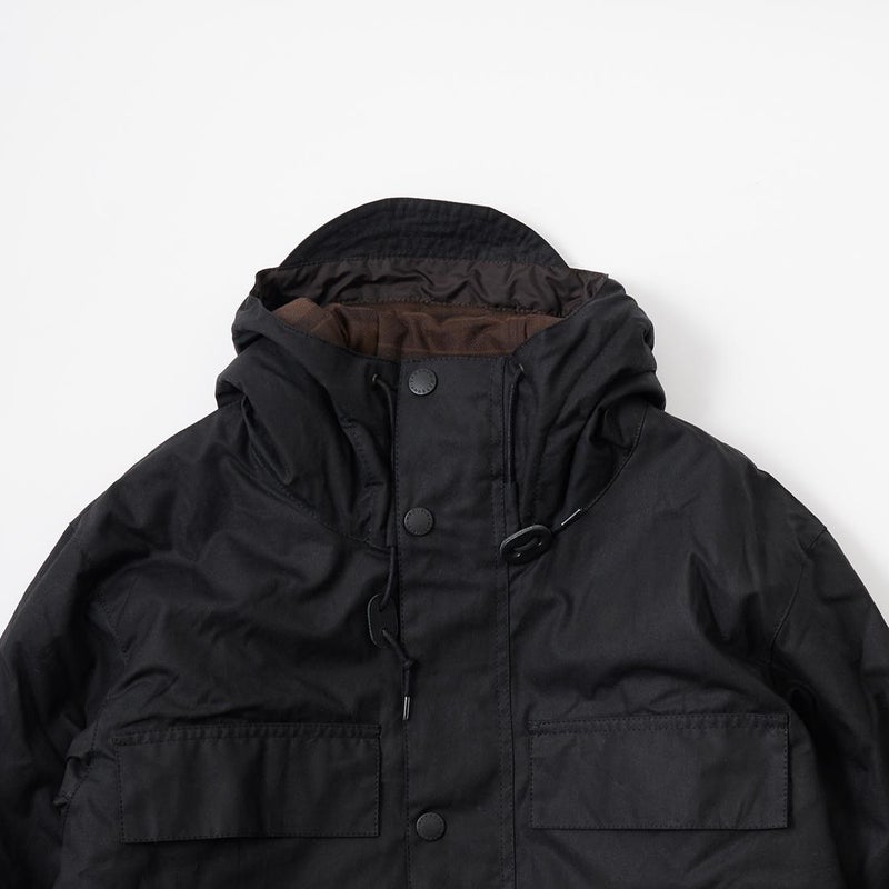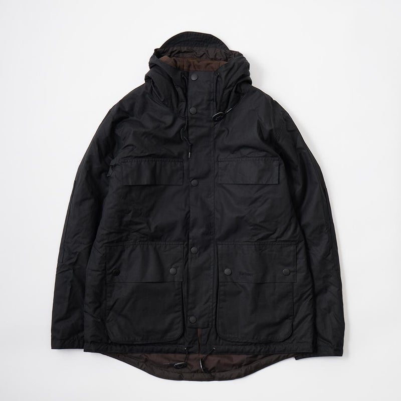 BARBOUR(バーブァー)のRE ENGINEERED DURHAM WAX JACKET。古き良きヴィンテージ、カントリースタイルを現代的にアップデートしたRe-Engineeredコレクション。ワックスコットンを使用したマウンテンパーカータイプ。胸の左右にフラップ付きのパッチポケット。腰の左右にも大きめサイズのフラップ付きパッチポケットを装備。腰ポケットの内側にはハンドポケットも装備。フロントはジップとボタンで留める仕様。左の腰ポケットにバブアーの刺繍。中綿が入っており高い保温性。オイルドコットンの経年変化も楽しみな1着。[Barbour Select]