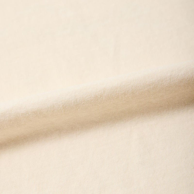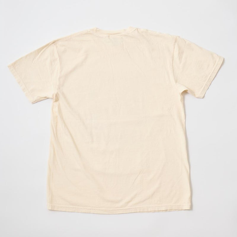 170センチ68キロで「L」でゆったりとしたサイズ感です。身幅、アームホール、肩幅は細くスッキリとしたつくり。「M」サイズだとピタッとしたタイトフィットな着用感です。普段よく穿くパンツ、ショーツのバランスから考えると「L」サイズのほうが丁度良いと思いました。様々なスタイリングで楽しめるTシャツ。音楽好きな方には堪らない1着ですね。