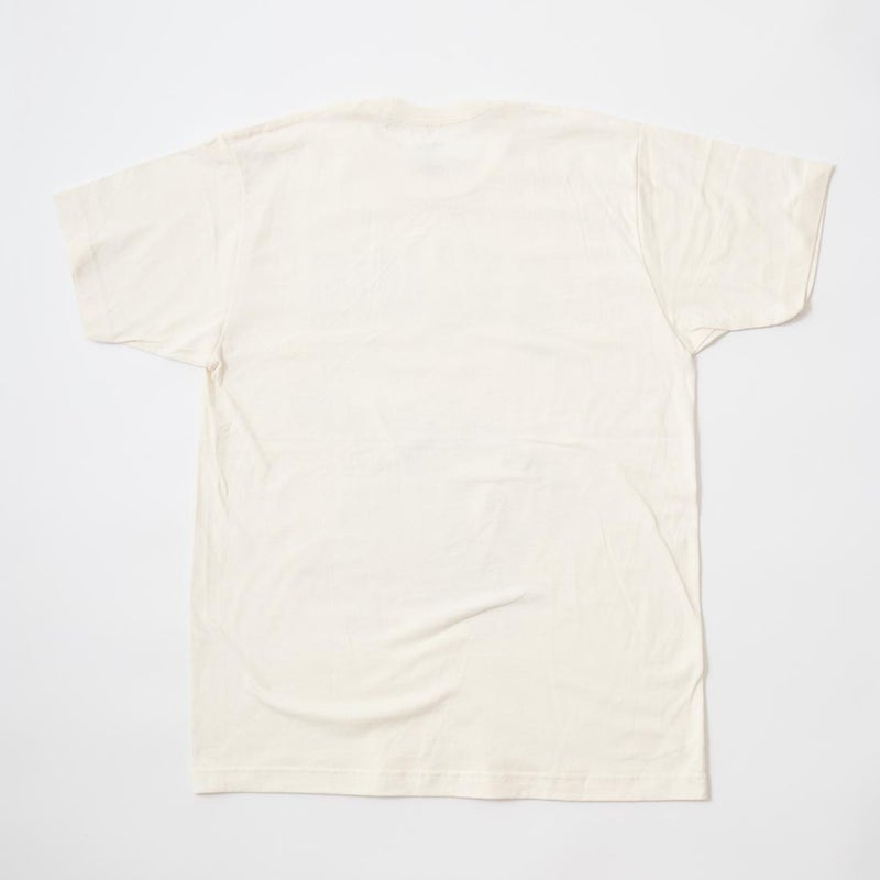 170センチ68キロで「L」でゆったりとしたサイズ感です。身幅、アームホール、肩幅は細くスッキリとしたつくり。「M」サイズだとピタッとしたタイトフィットな着用感です。普段よく穿くパンツ、ショーツのバランスから考えると「L」サイズのほうが丁度良いと思いました。様々なスタイリングで楽しめるTシャツ。音楽好きな方には堪らない1着ですね。