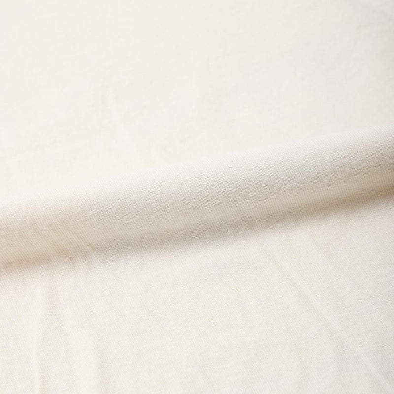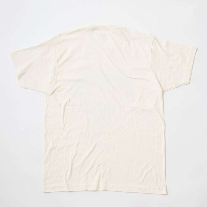 170センチ68キロで「L」でゆったりとしたサイズ感です。身幅、アームホール、肩幅は細くスッキリとしたつくり。「M」サイズだとピタッとしたタイトフィットな着用感です。普段よく穿くパンツ、ショーツのバランスから考えると「L」サイズのほうが丁度良いと思いました。様々なスタイリングで楽しめるTシャツ。音楽好きな方には堪らない1着ですね。