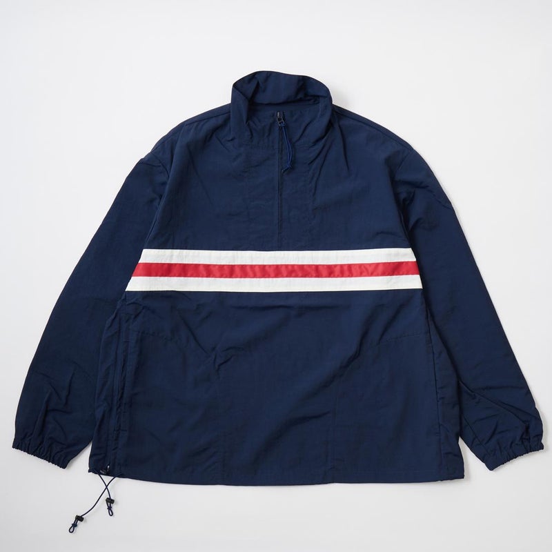 D.C. WHITE(ディーシーホワイト)のTRAINING BLOUSON。1960年代のアイビーリーグ大学生協ストアで販売されていたプロダクトを現代的に解釈したコレクション「ATLANTIC FIELD BY D.C.WHITE」。「テイクアイビー」で撮られた60年代のアイビーリーガーらが着用していたアノラックパーカーがデザインソースのスポーティなプルオーバージャケット。ハーフジップ仕様の低めのスタンドカラー。腰にはハンドポケット。右脇部分にはジップが装備されており着脱し易い仕様に。裾にドローコードが装備されておりシルエットアレンジが可能。素材は軽量で耐久性、速乾性、微撥水性をもつナイロンタスラン生地を採用。機能性も高い1着。