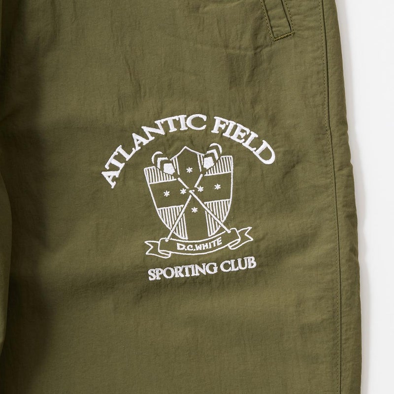 国内ブランド「D.C.WHITE ディーシーホワイト」が手掛けるスポーツウェアをフューチャーしたカテゴリー「ATLANTIC FIELD アトランティックフィールド」。そのカテゴリーからタスランナイロン製のパンツ「TRAINING PANT」がリリース。軽量で用途も広く、適度な耐久性と撥水性を併せ持つナイロン生地。裏地は肌離れも良いマイクロメッシュ生地。左腿部分に架空のスポーツクラブのロゴ刺繍。サイドポケット、バックウェルトポケット仕様。ウェストはゴムとドローコードで調整可能。裾はジップで開閉可。テーパードシルエットでいかにもスポーツウェアなルーズな印象はなくすっきりとしたキレイなライン。スポーツシーンだけでなく普段のカジュアルパンツとして着用可能なナイロンパンツ。