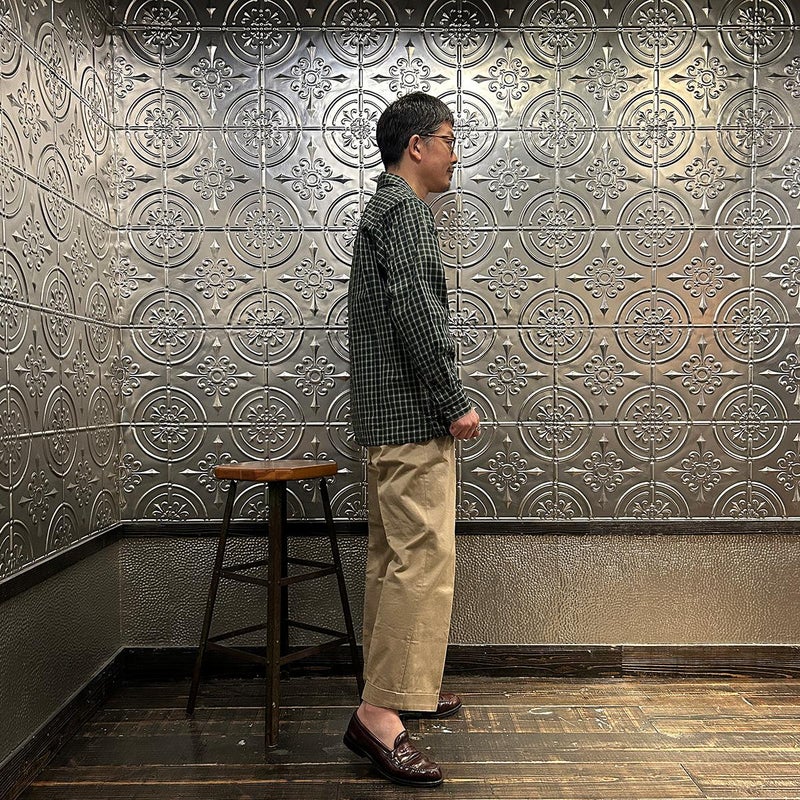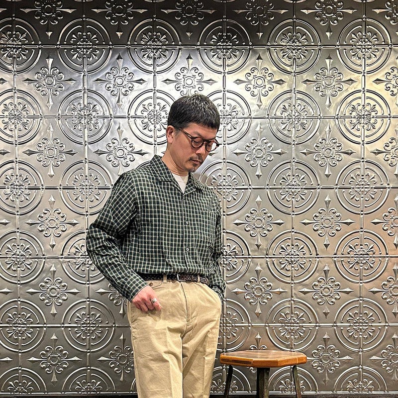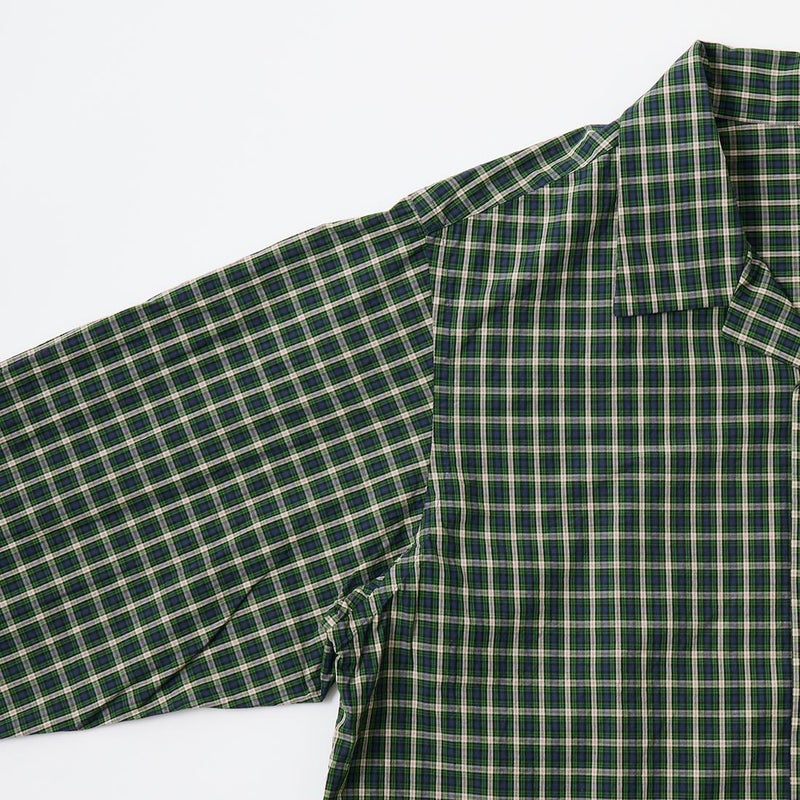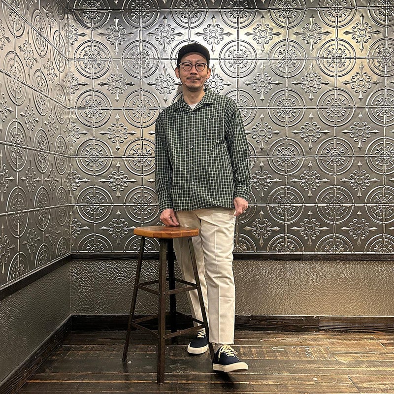 D.C. WHITE(ディーシーホワイト)のPROFESSOR SHIRT。プロフェッサーシャツはアイビーリーグの教授たちが着用したであろうシャツの知的な雰囲気を体現することを意図してデザインされたシャツ。テーラードジャケットを得意とするブランドが提案する開襟シャツは、襟をジャケットのラペルに見立てた斬新なアプローチ。襟がペタッと寝てしまわないように立体的にキレイにロールするように考えられています。ベーシックなチェック柄の3シーズン着れるコットンポプリン生地。国内屈指のドレスシャツ工場で縫製されており、細かいミシンピッチやボタン付けなどクオリティーの高さが分かります。左胸パッチポケットで左右の裾部分はスリット仕様。タックアウトしてもタックインしても着れるバランス。一枚で着た時の雰囲気が凄く良いシャツです。
