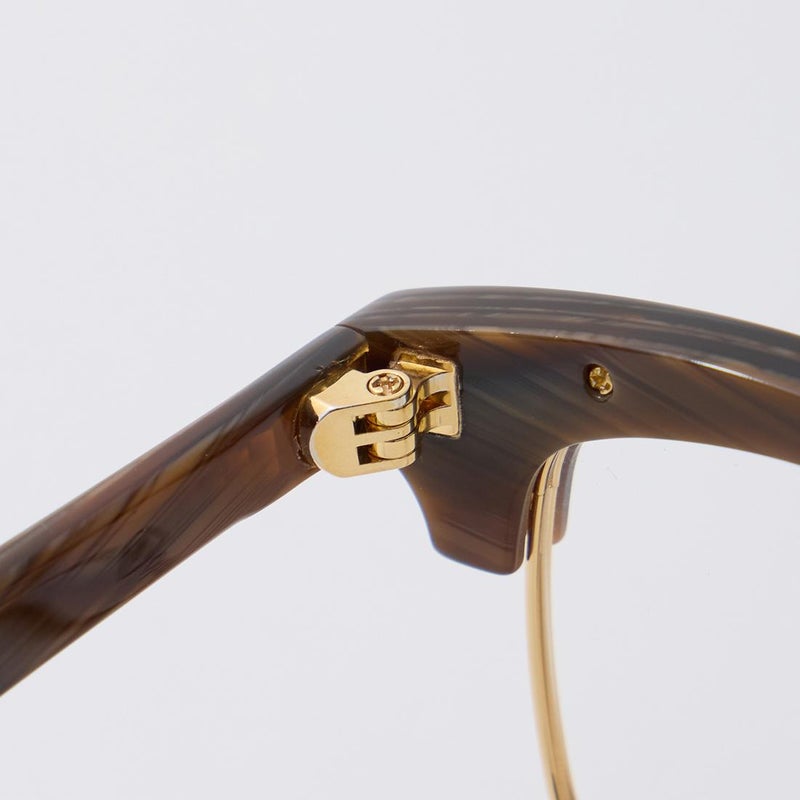 クラシックな雰囲気が強いデザイン。スタイリングにプラスするだけで雰囲気が一気に変わるのもポイント。鼻あてがついているので着用感も凄く良いですね。かけた瞬間あまりにもカッコ良すぎて完全に心奪われてしまいました。メガネではかなり希少になったアメリカ製である事も心擽られるポイント。好きな方には堪らない逸品です。