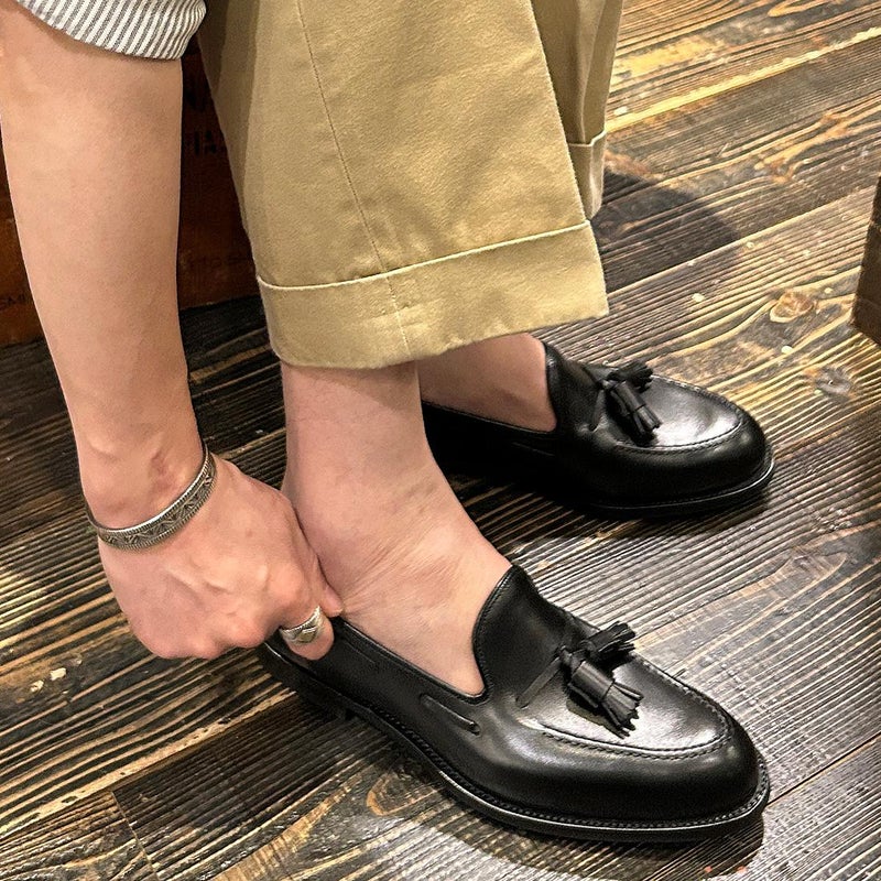 イギリス発「CROCKET&JONES(クロケットアンドジョーンズ)」のCAVENDISH 3 City Sole。ワールドワイドで人気急上昇しているタッセルスリッポン。従来から使用している木型をベースに、日本人の足型を考慮して、踵廻りやアーチ部分のサイズを従来より狭めた新開発のラスト「375」を採用。踵の小さい日本人にも履きやすくなっています。ソールは新たに開発されたラバー製の「シティ・ソール」を採用。シャープな見た目ながらもしっかりとしたグリップと快適な履き心地。素材は最高級のタンナーから仕入れたヨーロッパ産のカーフスキンを使用。職人が手作りで仕上げる、デザインアイコンのタッセルがチャームポイントです。