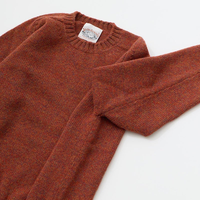 JAMIESON'S (ジャミーソンズ) 3PLY PLAIN SADDLE SHOULDER CREW NECK - 261 PAPRIKA