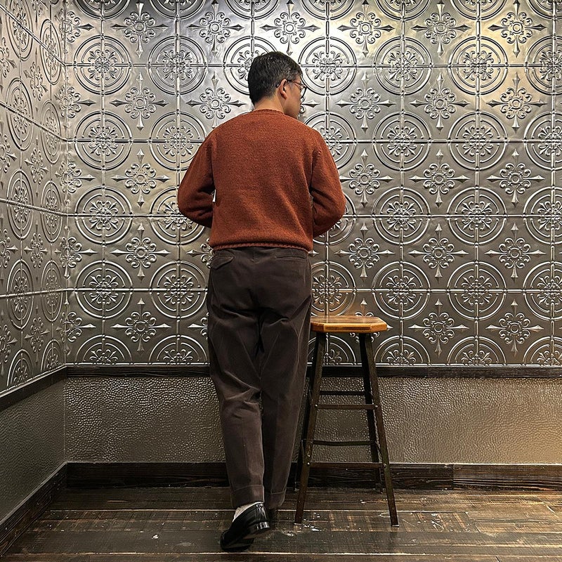 170センチ68キロで「42」サイズで丁度良いです。スッキリ着るのがお好きな方にはオススメのサイズ感です。程よくクラシックな風合いとガチっとした型崩れしにくい仕様で編まれた温かみのある生地感。真冬に重宝するアイテム。歳を重ねても着続けたいシンプルなデザイン。