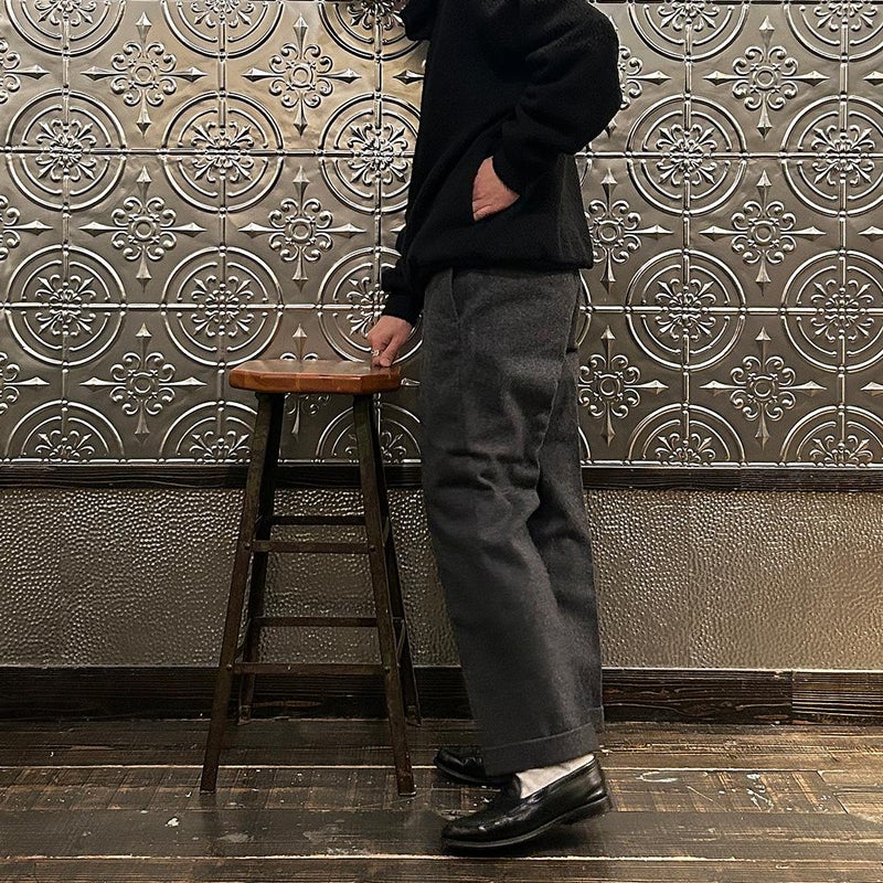 170センチ68キロで「S」サイズでゆったりとした着用感です。インナー使いとしての用途だけではなく、アウター感覚としても着用可能な便利なサイズ感。寒い時期には最適な生地。カジュアルからモードまで幅広いスタイルで楽しめる重ね着好きな方にはオススメの1着です。