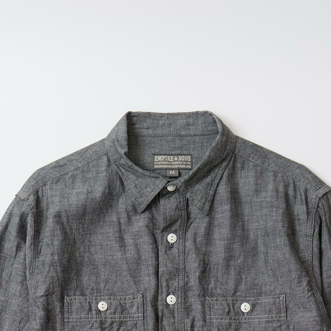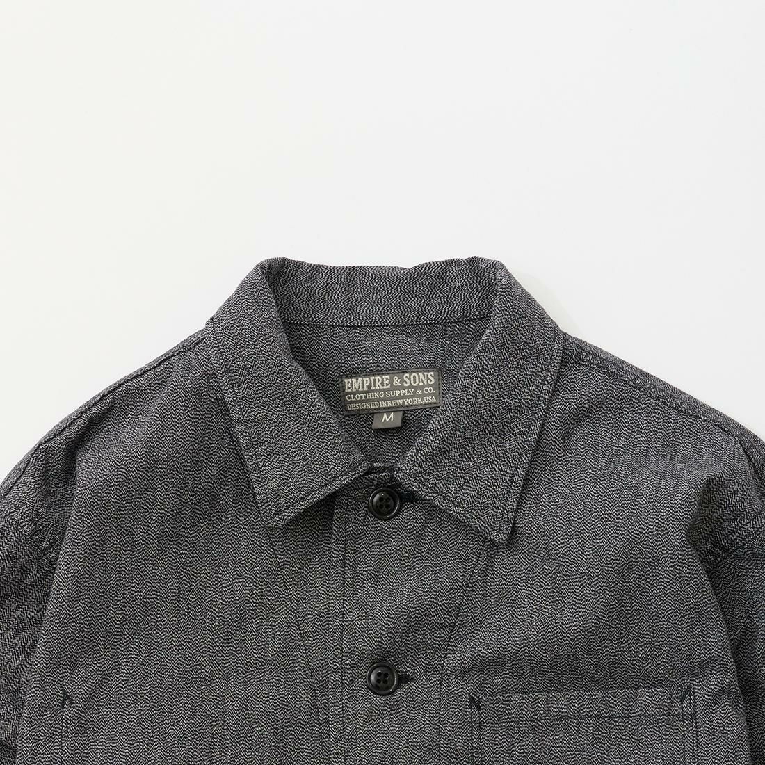 他の画像を見る カバーオール ワークジャケット 7.5オンス ソルトアンドペッパー シャンブレー 日本製 EMPIRE & SONS (エンパイア アンド サンズ) COVERALL WORK JACKET 7.5oz SALT AND PEPPER CHAMBRAY - #1 SALT AND PEPPER 販売価格 ¥ 29,700 税込 お気に入りに登録する