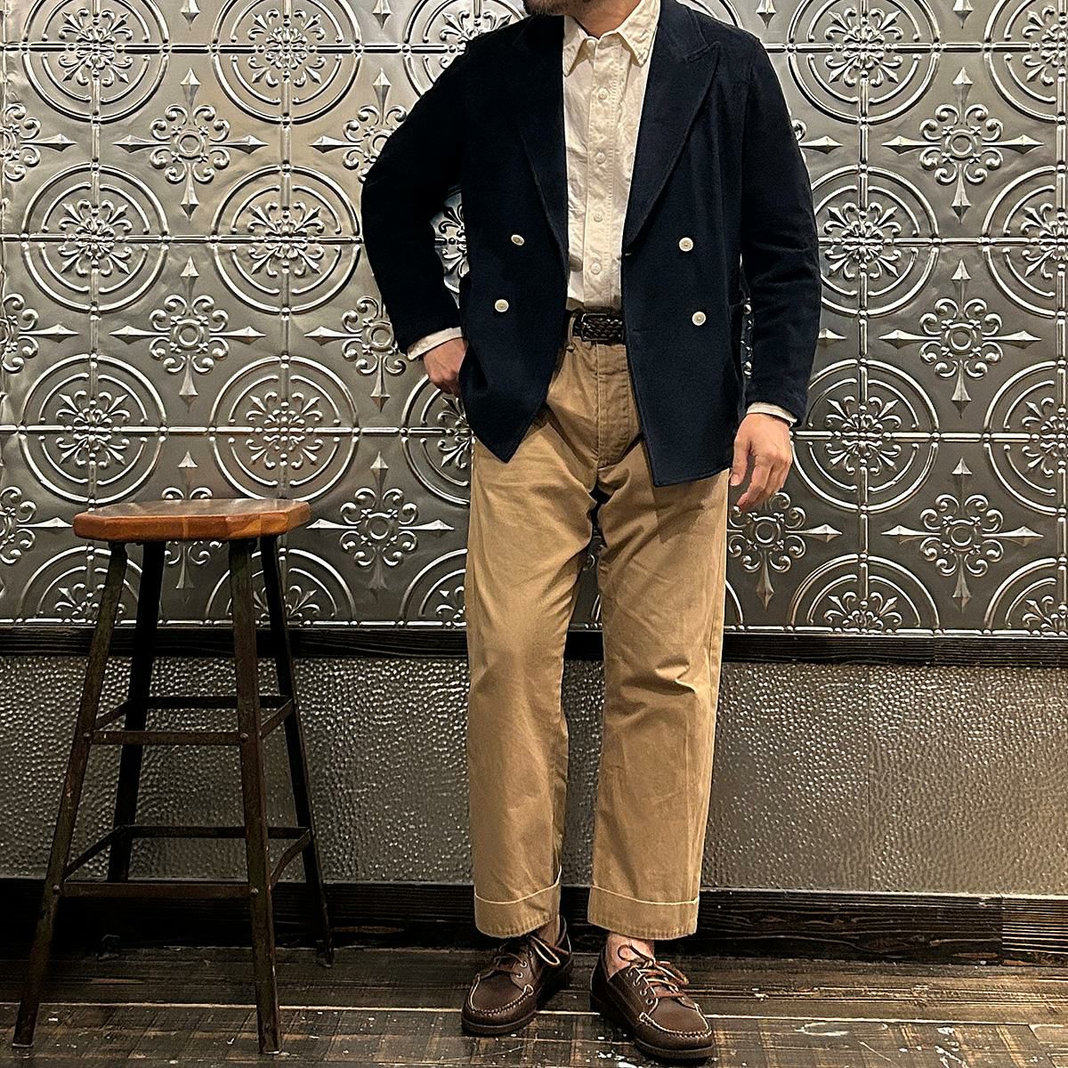 他の画像を見る カバーオール ワークジャケット ヴィンテージ スラブチノクロス 日本製 EMPIRE & SONS (エンパイア アンド サンズ) COVERALL WORK JACKET VINTAGE SLUB CHINO CLOTH - OLIVE DRAB 販売価格 ¥ 27,500 税込 お気に入りに登録する