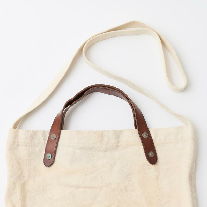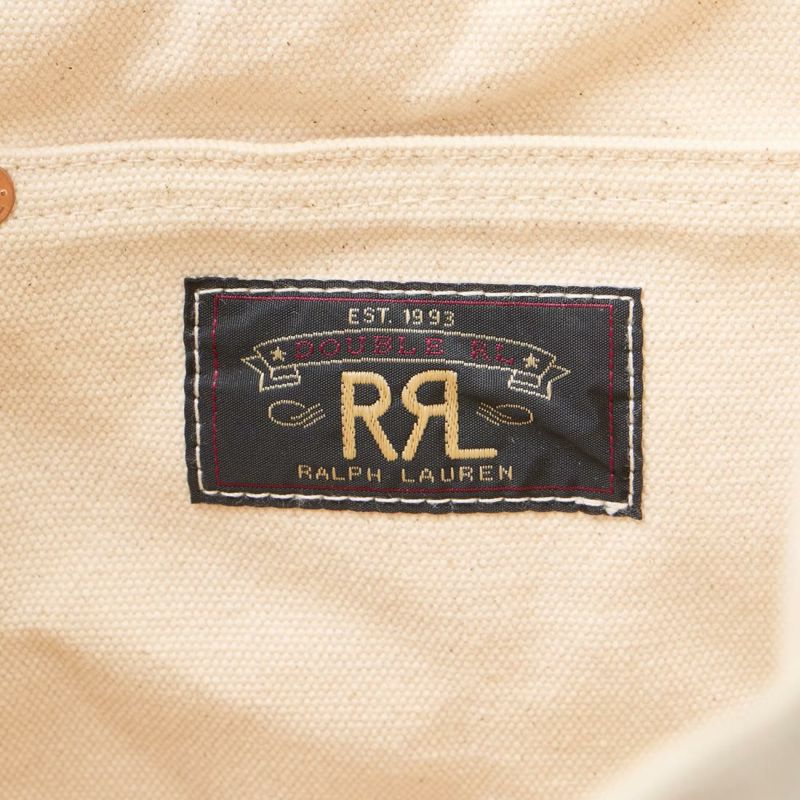 Double RL(ダブルアールエル)のMARKET TOTE TOTE COTTON CANVAS。ナチュラルカラーのコットンキャンバスを使用したシンプルなトートバッグ。表中央にステンシルでブランドロゴがプリントされています。レザーの手持ちハンドルと、コットンキャンバスのショルダーストラップ付きの2WAY仕様。内側には大小二つのポケットが縫い付けられ、表面にステッチ、リベットが出るデザインになっています。