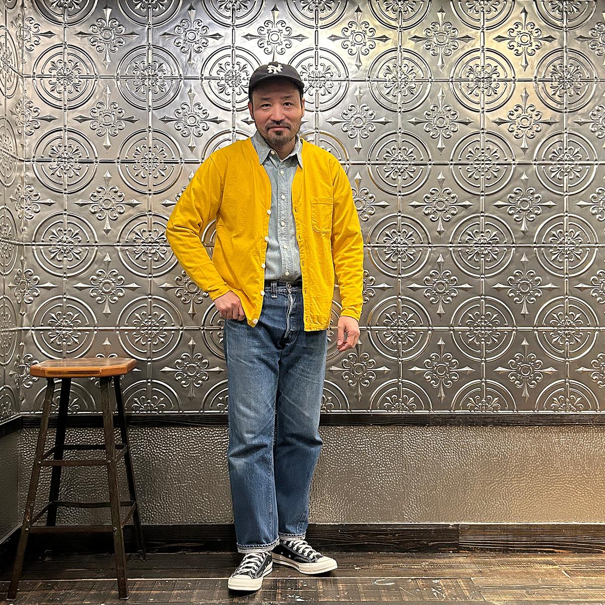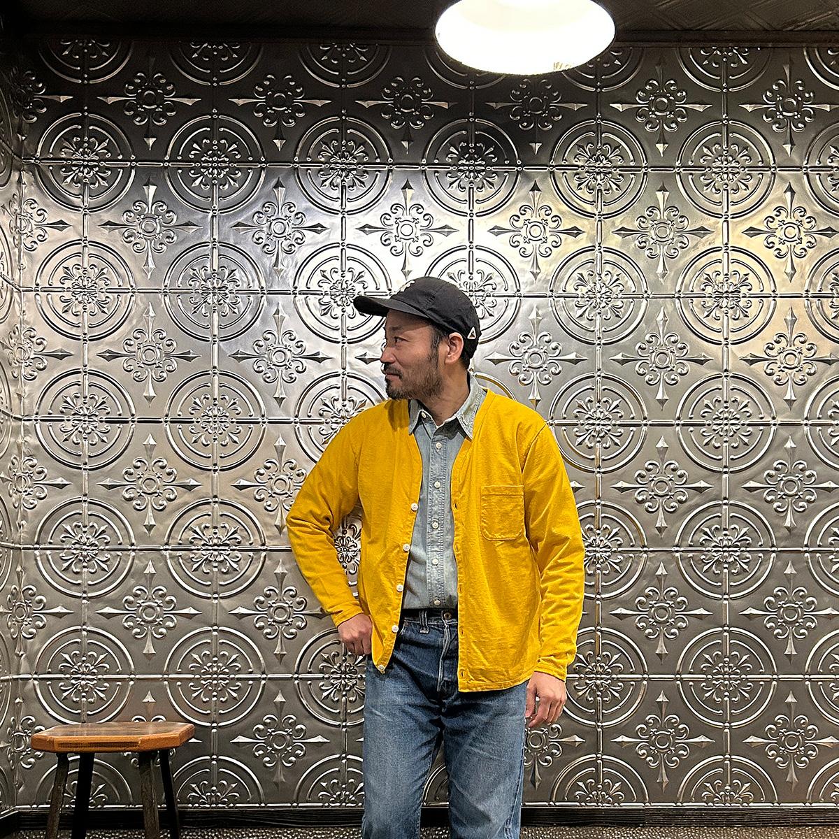 他の画像を見る メンズ バインダーVネック 7オンス シングル ジャージー カーディガン 日本製 FELCO (フェルコ) L/S BINDER V NECK CARDIGAN W/POCKET 7oz 16SINGLE RUFFY JERSEY - YELLOW GOLD 販売価格 ¥ 10,780 税込 お気に入りに登録する