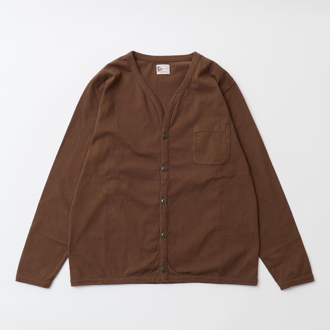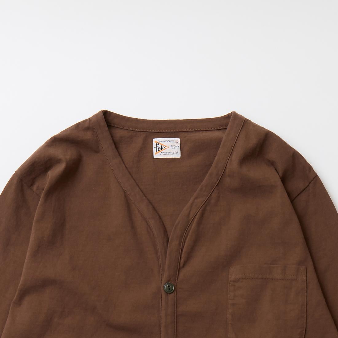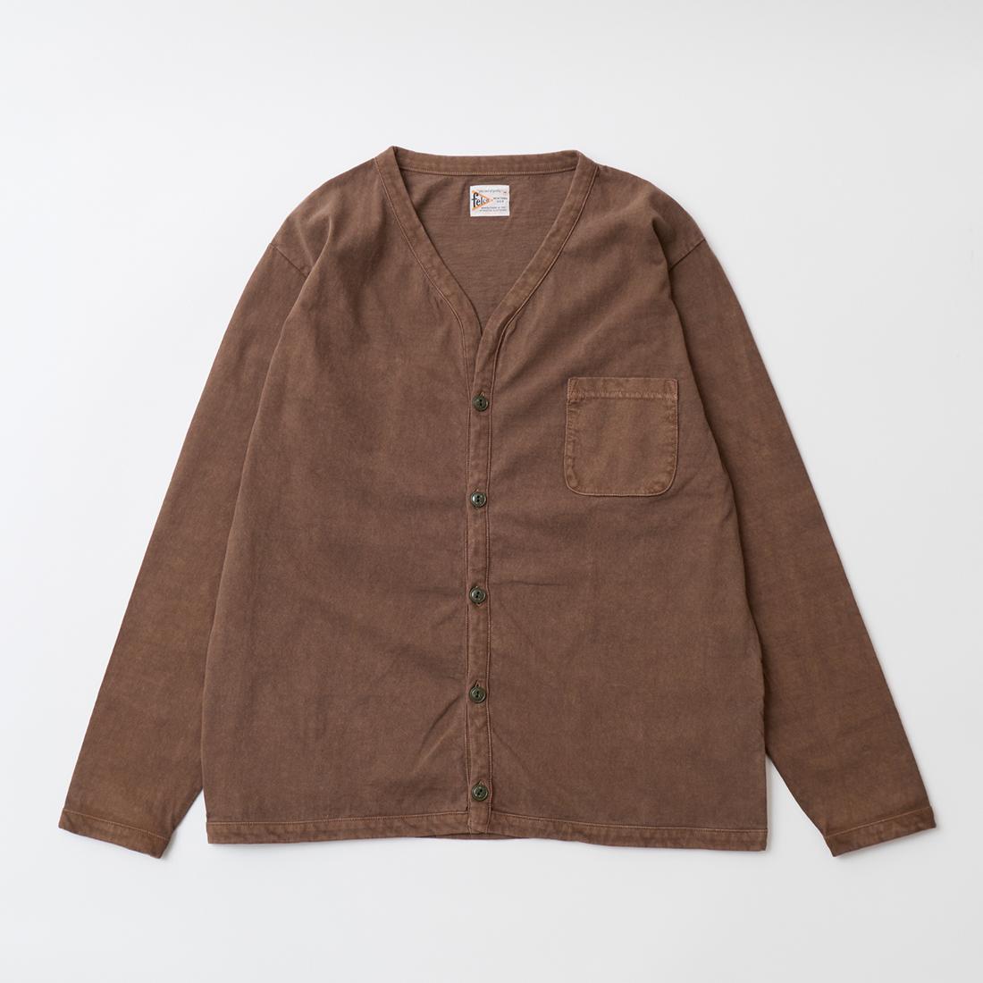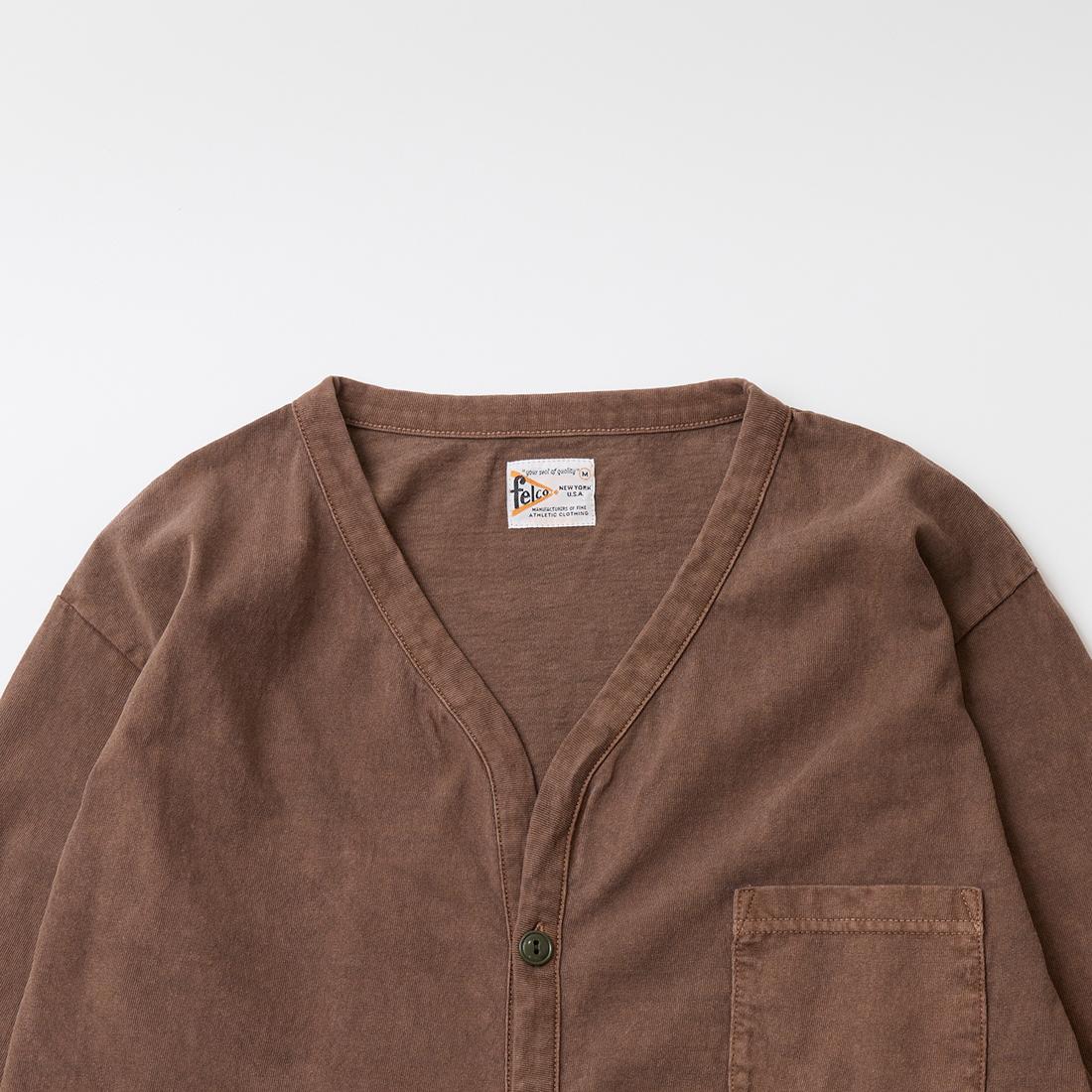他の画像を見る メンズ バインダーVネック 7オンス シングル ジャージー カーディガン 日本製 FELCO (フェルコ) L/S BINDER V NECK CARDIGAN W/POCKET 7oz 16SINGLE RUFFY JERSEY - PGR BROWN 販売価格 ¥ 12,100 税込 お気に入りに登録する