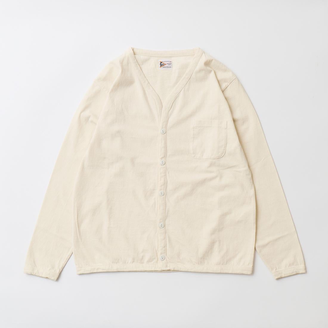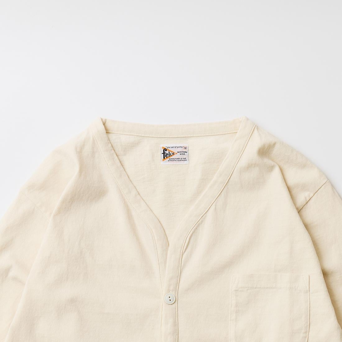 他の画像を見る メンズ バインダーVネック 7オンス シングル ジャージー カーディガン 日本製 FELCO (フェルコ) L/S BINDER V NECK CARDIGAN W/POCKET 7oz 16SINGLE RUFFY JERSEY - NATURAL 販売価格 ¥ 10,780 税込 お気に入りに登録する