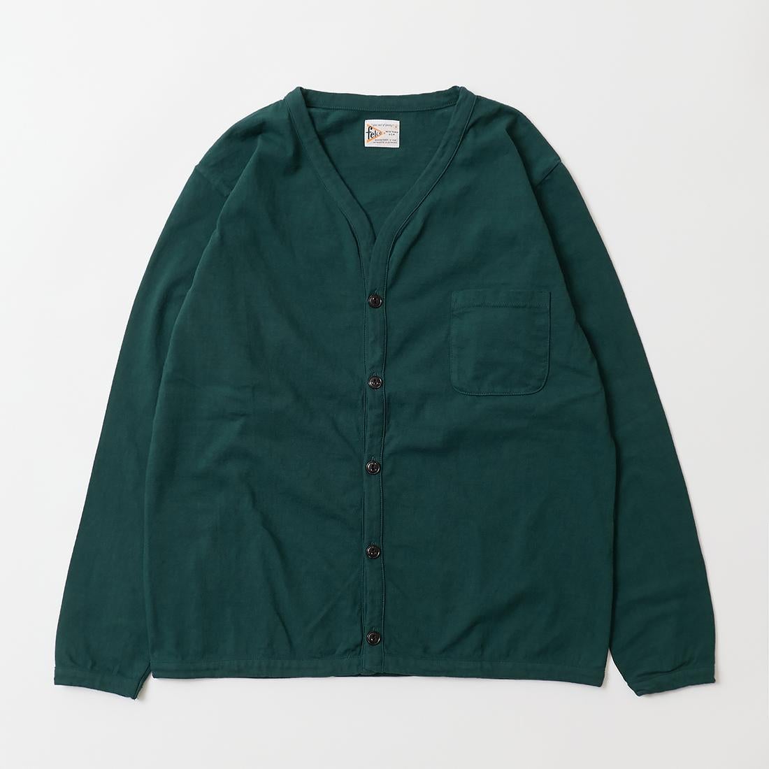 他の画像を見る メンズ バインダーVネック 7オンス シングル ジャージー カーディガン 日本製 FELCO (フェルコ) L/S BINDER V NECK CARDIGAN W/POCKET 7oz 16SINGLE RUFFY JERSEY - PGR GREEN 販売価格 ¥ 12,100 税込 お気に入りに登録する