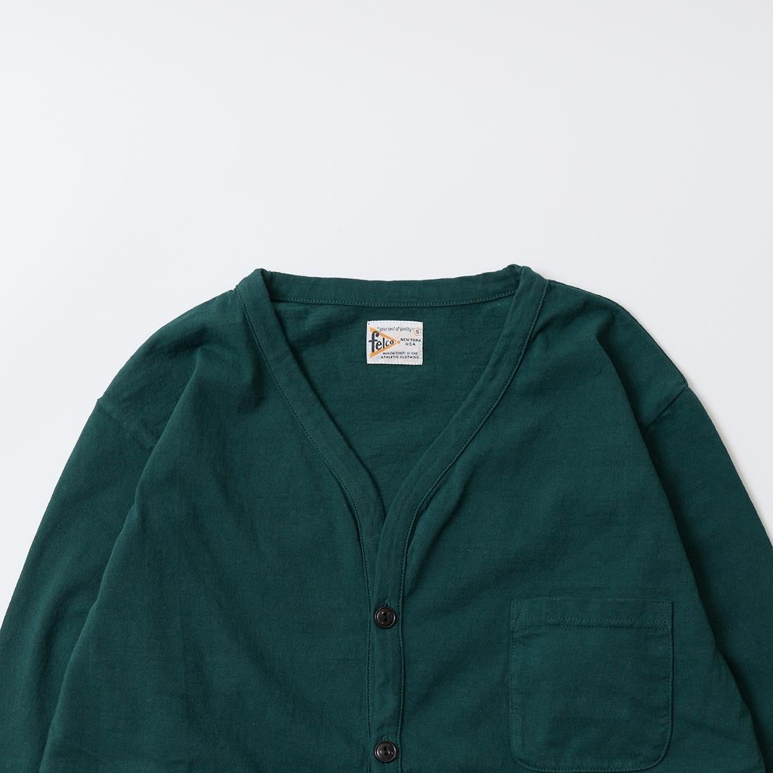 他の画像を見る メンズ バインダーVネック 7オンス シングル ジャージー カーディガン 日本製 FELCO (フェルコ) L/S BINDER V NECK CARDIGAN W/POCKET 7oz 16SINGLE RUFFY JERSEY - GREEN 販売価格 ¥ 10,780 税込 × 在庫切れ お気に入りに登録する