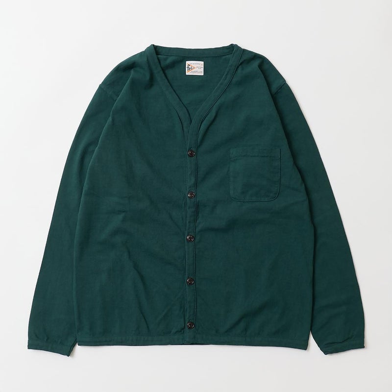 5. FELCO (フェルコ) L/S BINDER V NECK CARDIGAN W/POCKET 7oz 16SINGLE RUFFY JERSEY - GREEN
